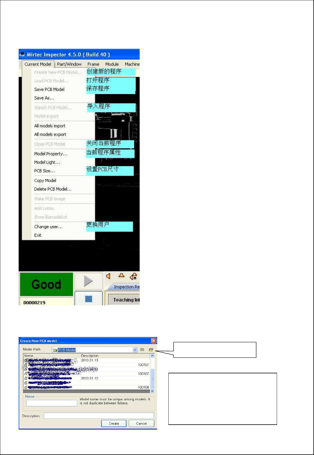 5 2. Te aching 编程流程图 Teaching 编程 Create a New PCB Mode l 建立一个新的程序 Register Model Name, Descripti on 输入程序名称/备注 信息 Register PCB Size 设置PCB板尺寸(左下右 上) Capture W hole PCB Ima ge 扫描 PCB 全体图像 Set Fiduc ial Mark 设置 PCB Mark 基准点 …