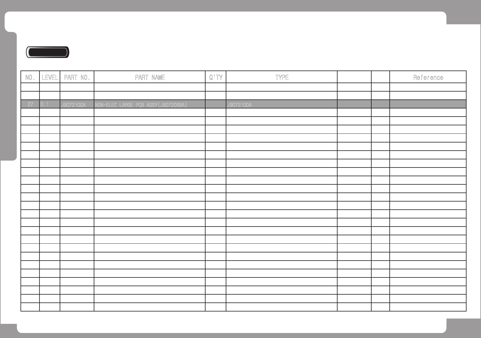 NO. LEVEL PART NO. PART NAME Q'TY TYPE