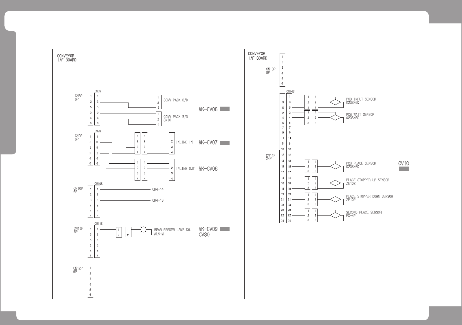 SAMSUNG TECHWIN Page 122 CP45NEO C onveyor Board Interface (3/5) CONVEYOR I/F BOARD 3 3 15 17 12 13 8 11 10 15 17 12 13 8 11 10 24 22 20 20 24 22 21 23 19 21 19 23 14 18 16 14 18 16 EDGE PUSHER BACKWARD SENSOR 1 3 2 1 3 …