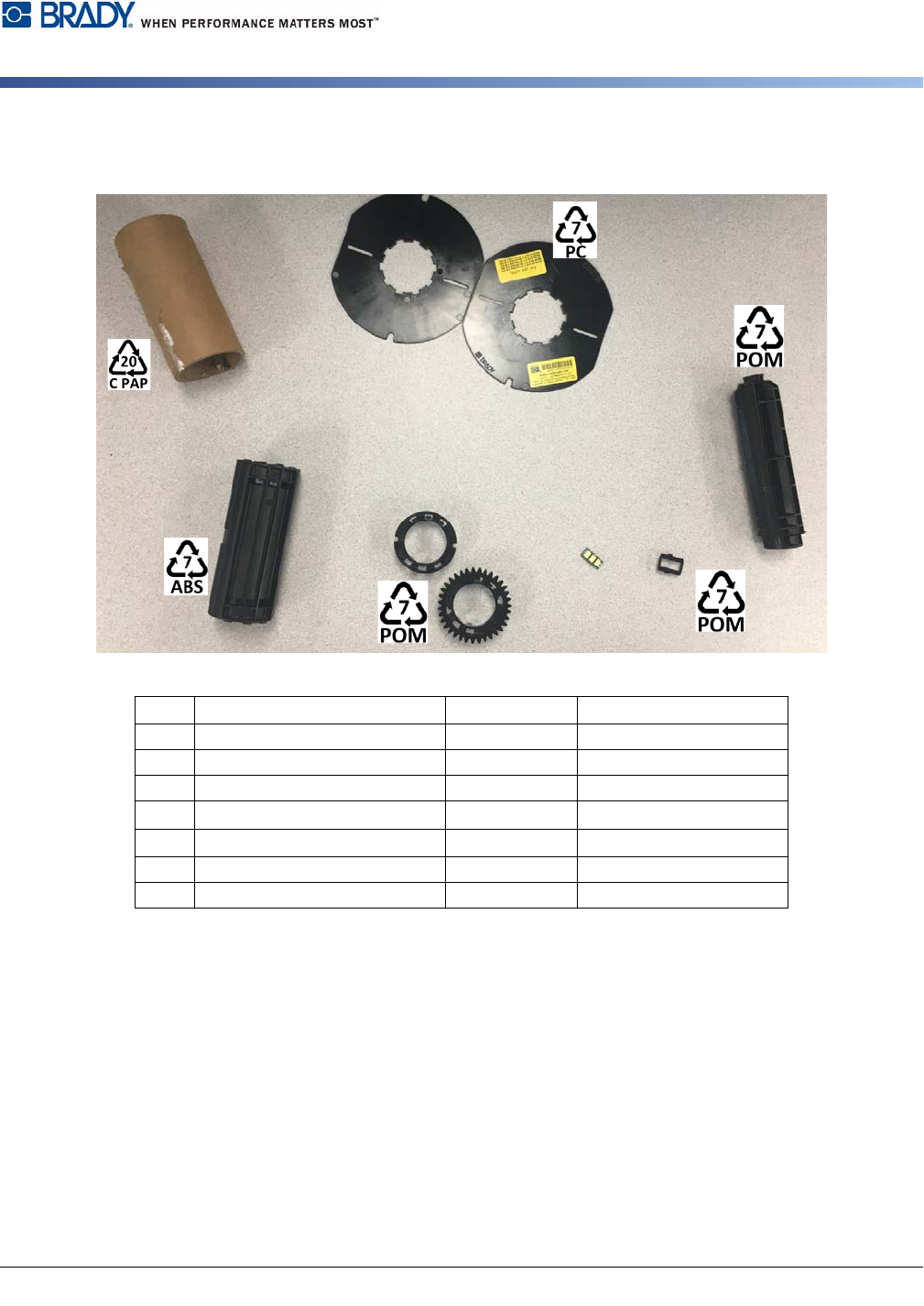 编号 组件 材料 回收桶