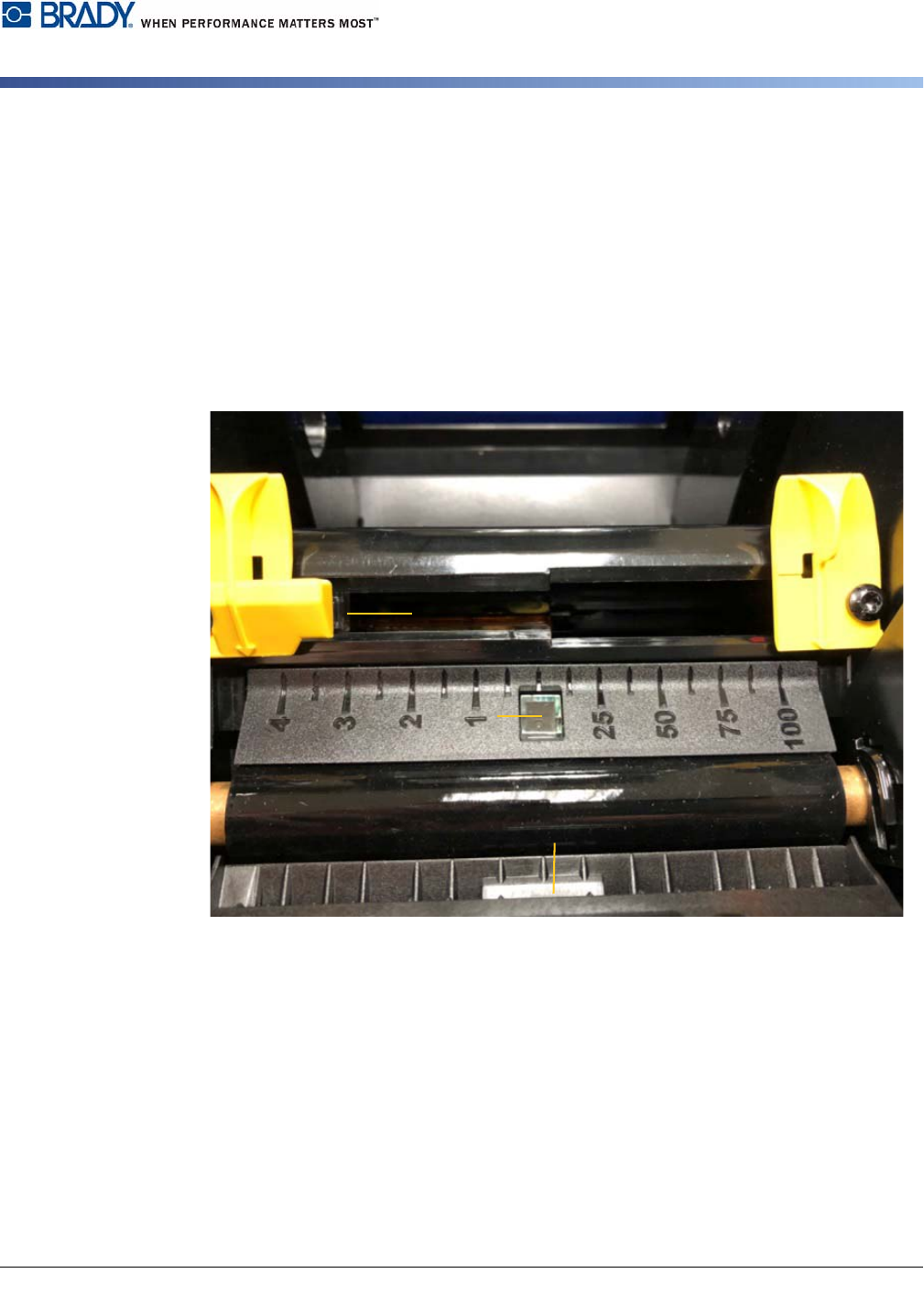 耗材和切刀传感器位于打印机内部,可能会被剪切标签时产生的灰尘覆盖。耗材传感器之一位于黄色耗