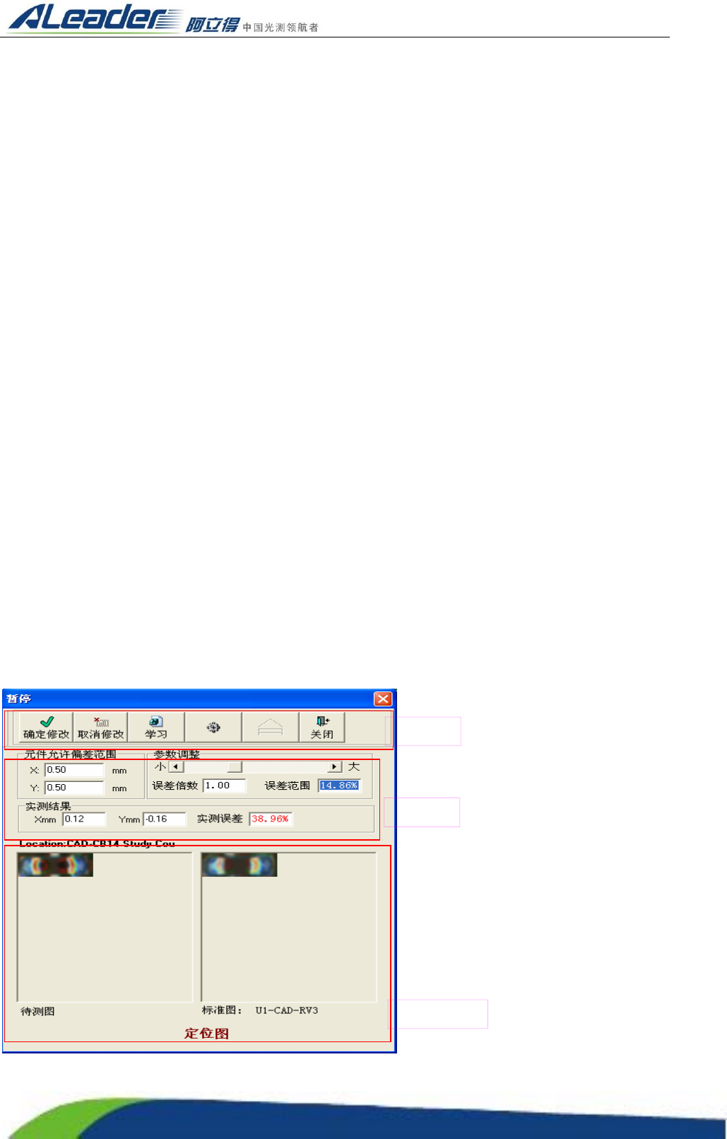 数据暂停窗体是当前元件与标准元件超出限定范围(误差范围),弹出的数据窗体。它由工具条、数据