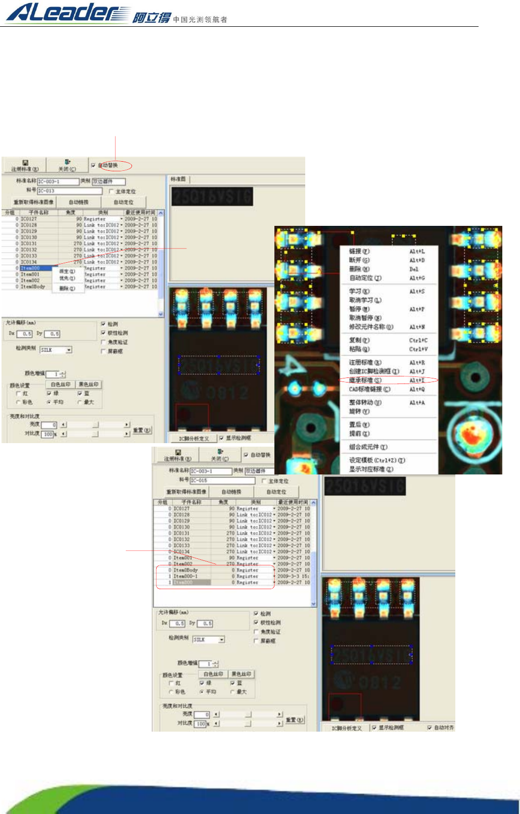 Http:www.aoichina.c om TEL:0769-22620377 2262 0877 FAX:0769-23102060 Page:48 of 10 3 3.1 1.6 继承标准 做法:在编辑区选择某需继承的元件标准,右键点击“继承标准” (快捷键 Alt+i )打开继承标准 对话框,在需继承标准的“子件名称”上右键选择派生,调整好框的位置大小,点击工具条的“继承 标准”按钮即可。如下图: 1 )派生:即是增加。 2 )…