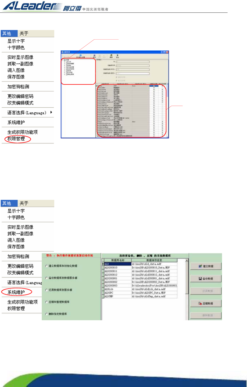 注意:数据库在出厂前均已设定好不需改动,没有经过培训请勿