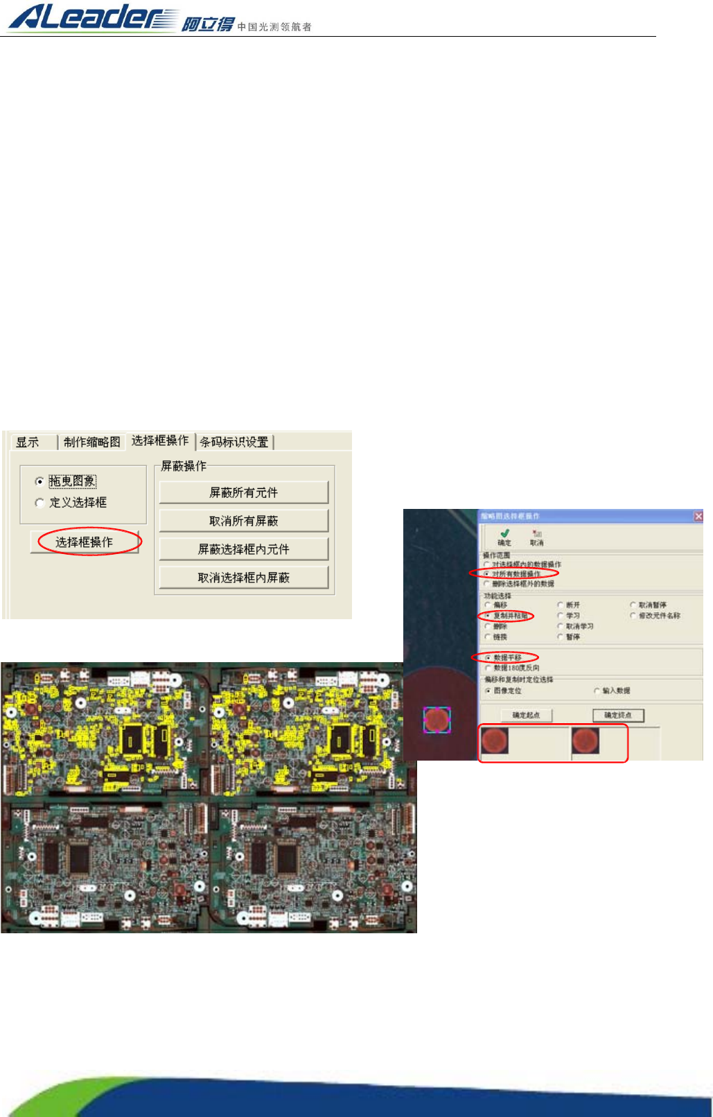选择框操作的作用:如果所检测 PCB 板是连片板,此时只需对其中一块板操作或进行一定的删除,其它