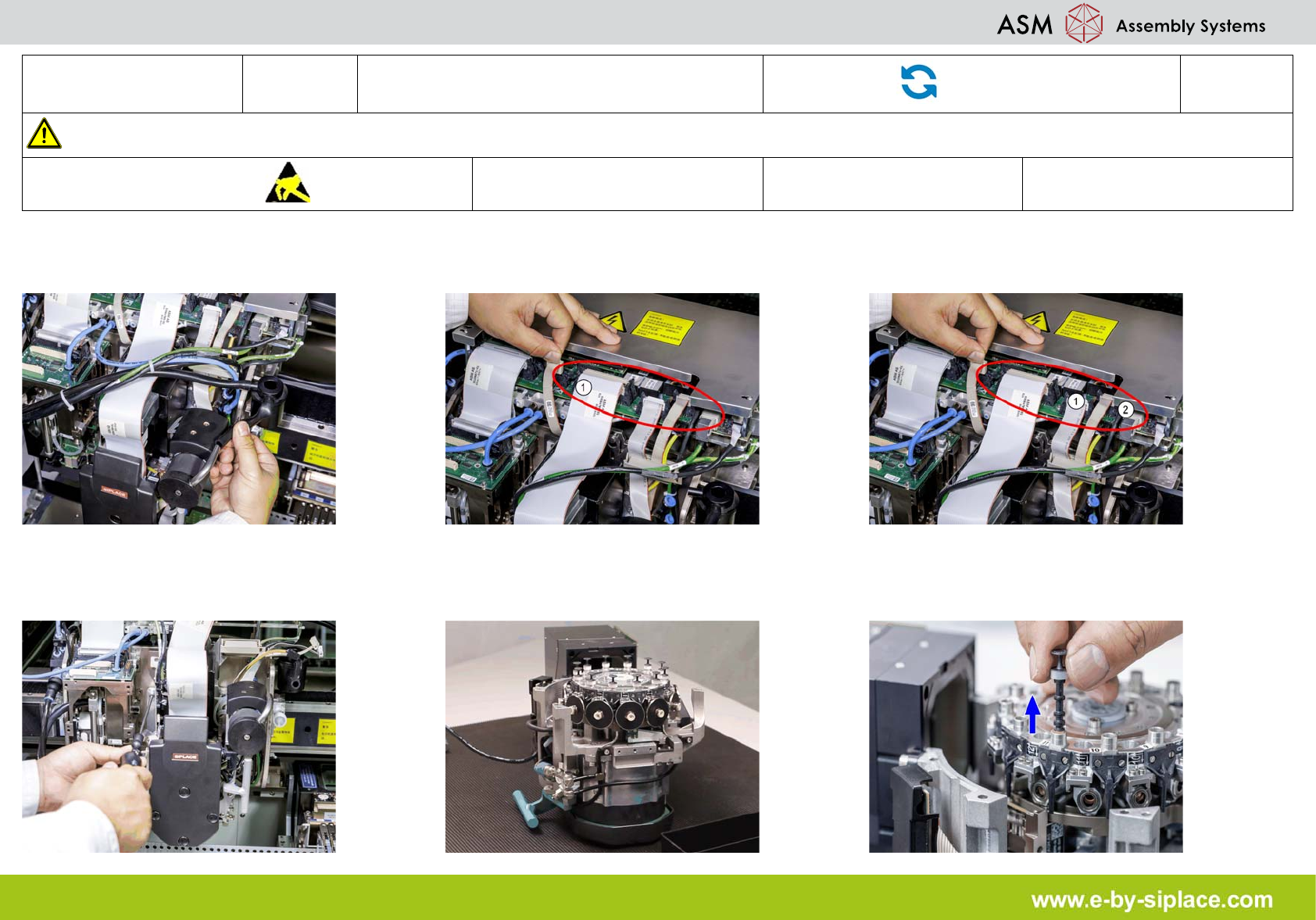 E-by SIPLACE CP12 & CP6 Removing the Head Front Part Part Exchange 2/2 CAUTION! Refer to safety inst ructions in user manual before wo rking on the machine. ESD guidelines are to be followed Tool: Wear Part: Consum a…