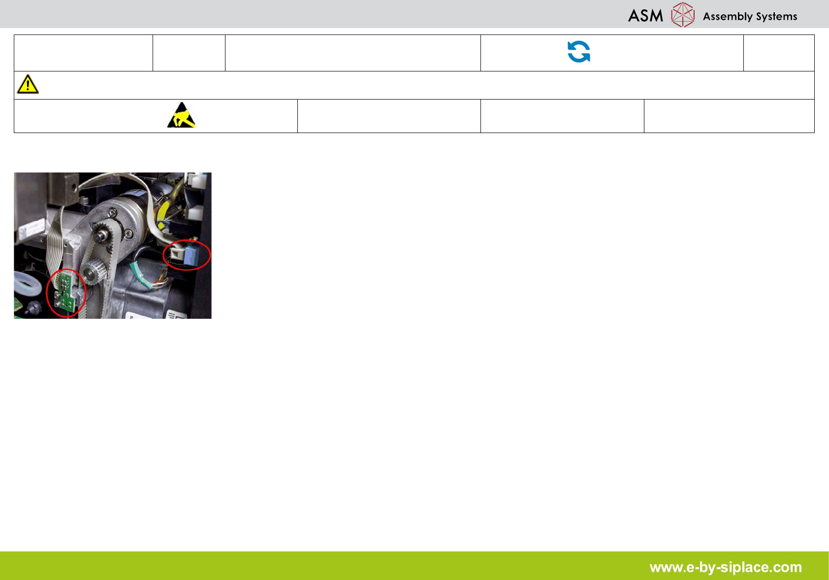 E-by SIPLACE CP12 & CP6 Adjust the Z-Axis Belt Tension Part Exchange 3/3 CAUTION! Refer to safety inst ructions in user manual before working on the machine. ESD guidelines are to be followed Tool: Wear Part: Consum …