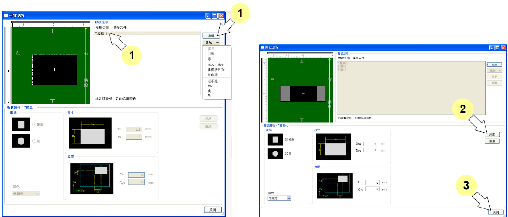 在形状可选项画面上,能补加、编辑定义元件形状的可选项。