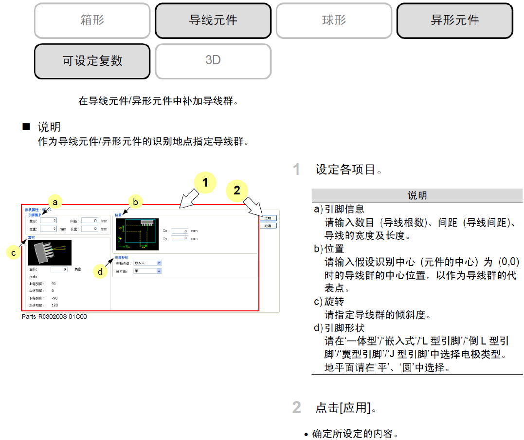 在形状可选项画面上,能补加、编辑定义元件形状的可选项。