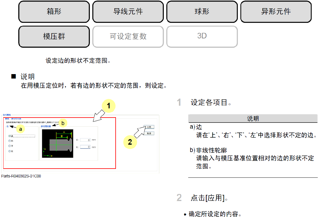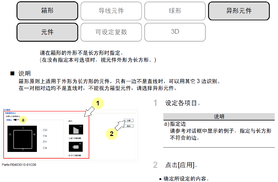 ①箱形边指定