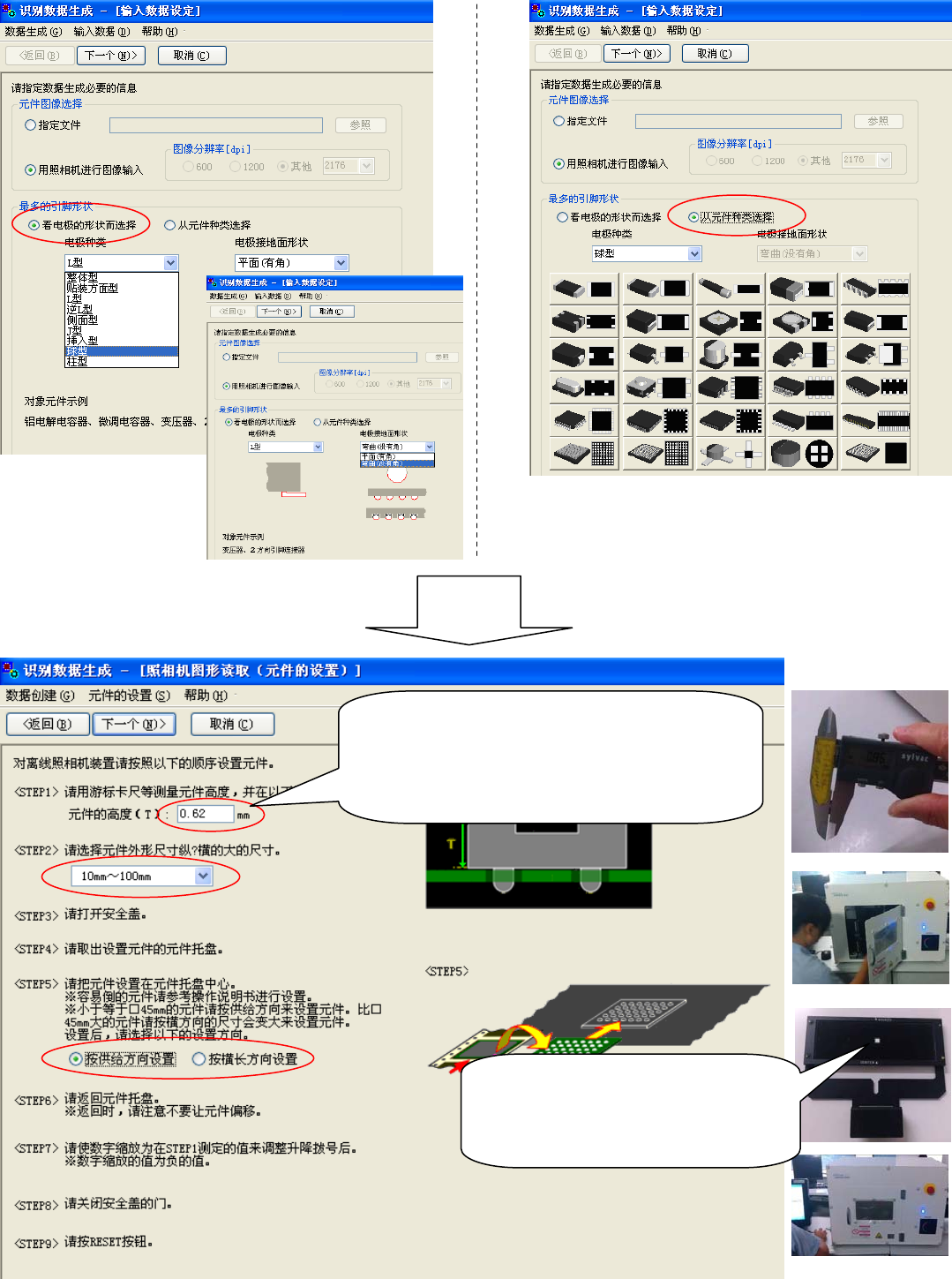 - 69 - 调节升降盘当数字仪表显示为 -0.62 时停 止调整, 数值偏差允许范围为: +-0.05mm 注意: 托盘上表面的零点基准与相机距离 为 4mm 元件要放在托盘的正中位置且 注意封装角度, 偏差太大会造成 识别异常