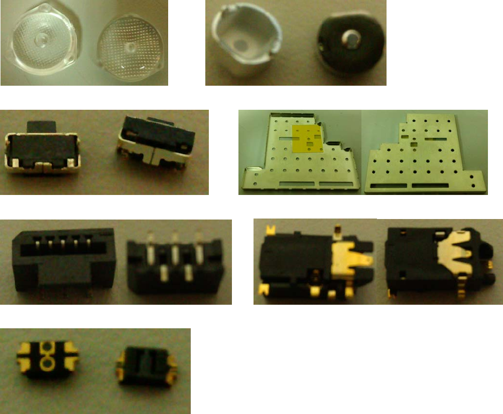 - 79 - 4) 制作异型元件资料库并进行示教 要求 : ①设置引线 / 球组 / 电极 / 圆形 / 矩形 / 角 / 线 ②设置区块匹配 图例 : ① . L E D C o v e r ② . Cover ③ . S w i t c h ④ . .Shield Cover ⑤ . C o n n e c t o r ⑥ .Earphone Socket ⑦ . L i g h t C o u p l i n g