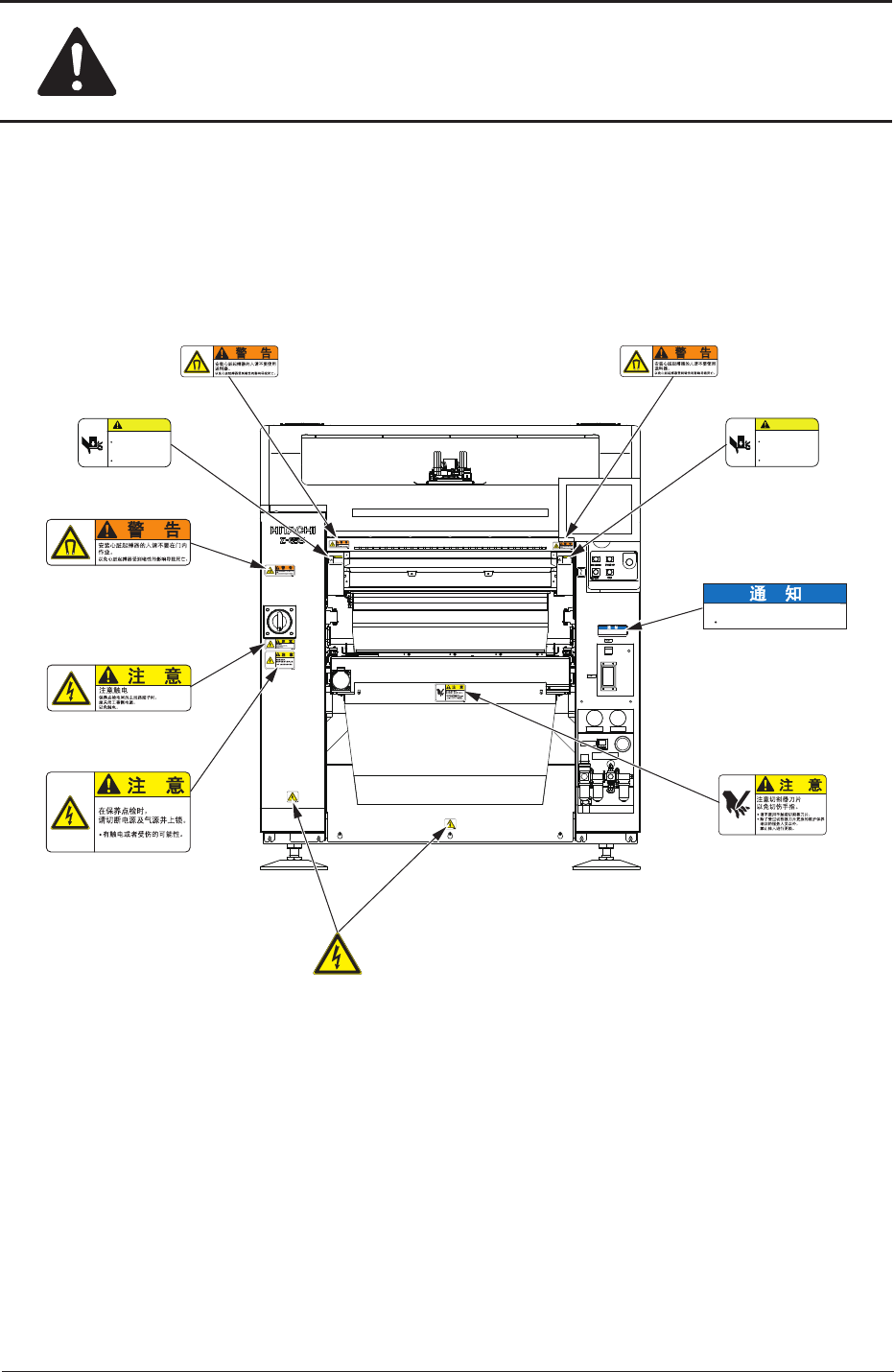 安全 -15 1OM-1752 1306-002 5. 本装置的警告标签 6 6 01-0334- 強磁石に注意 注 意 金属を近づけないでください。 磁器に引き寄せられけがをする おそれがあります。 (12) (18) (12) (18) (7) (7) 01-0334- 強磁石に注意 注 意 金属を近づけないでください。 磁器に引き寄せられけがをする おそれがあります。 注意强磁铁 请不要靠近金属。 以免被磁性吸住而受伤。 注意强磁…