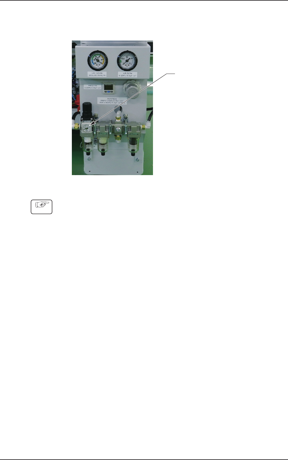 4OM-1752 1-18 1305-001 4.1.2 主气压的点检 周期 : 每天 ( 所要时间 :1 分钟 ) 主气压 F4A9 Procedure 设定空气压力为 0.45MPa(4.6kgf/cm 2 ),请目视确认在运行时空气压力是否 达到 Min.0.4MPa(4.1kgf/cm 2 )。 否则,请进行调整。 4.1 气 源