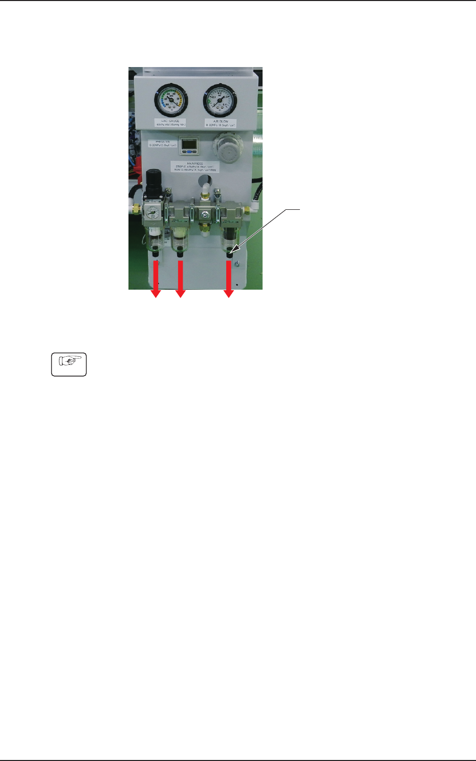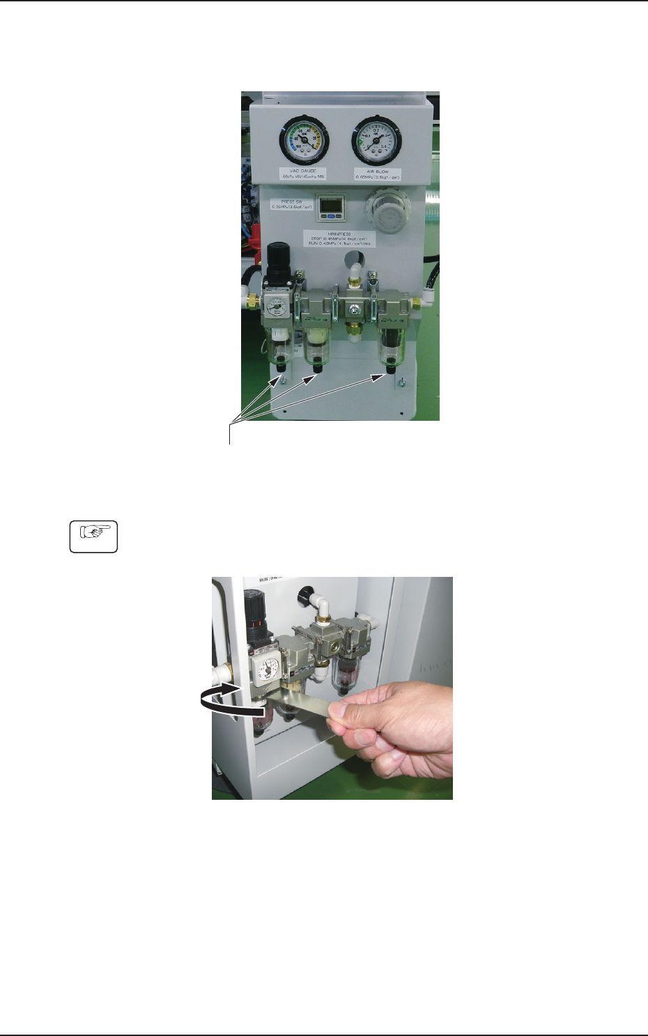 4OM-1752 1-20 1305-001 4.1.4 过滤器的清扫 周期 : 每三个月 ( 所要时间 :5 分钟 ) 过滤器 F4A11 Procedure (1) 使用空气过滤器外壳治具,向图中箭头方向转动外盒部,拆卸外盒。 F4A12 4.1 气 源