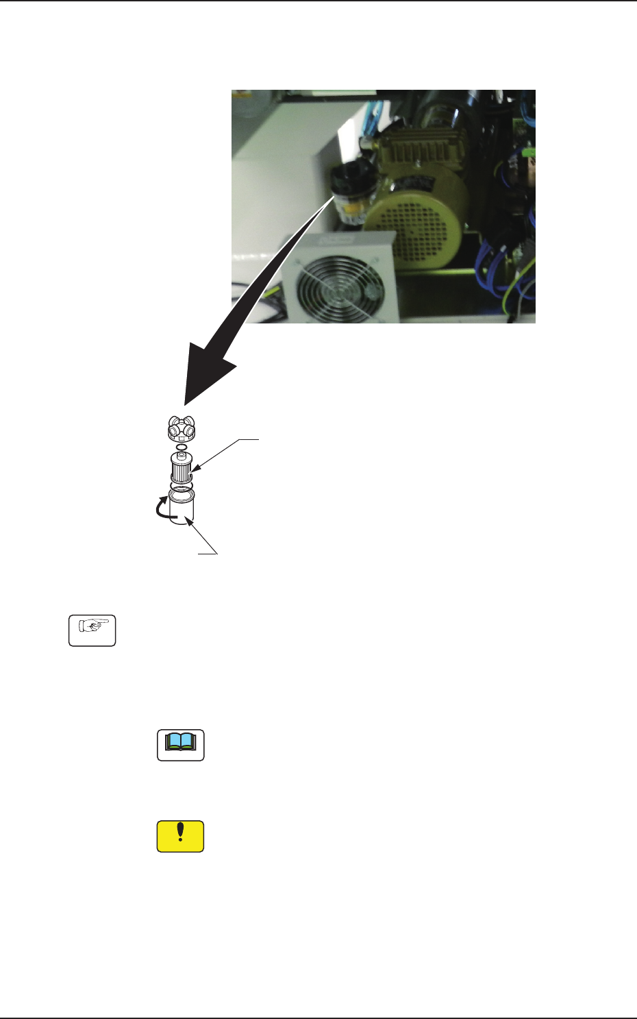 (2)按箭头 C 的方向转动滤盒卸下,再卸下里面的过滤器。