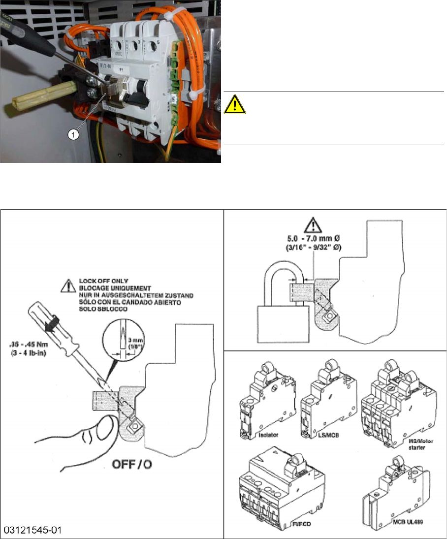 ► Attach the lockout attachment (1) to the circuit