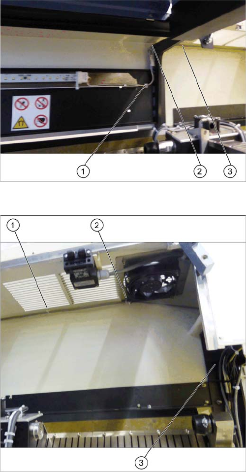frame and the ceiling of the machine interior (2) and