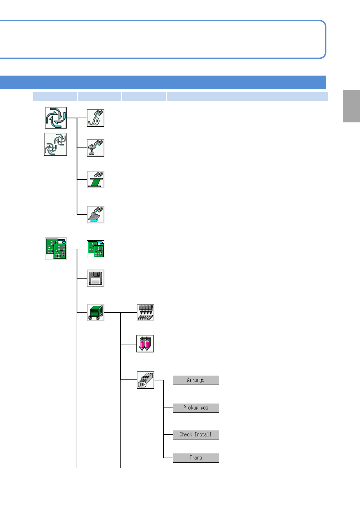 NPM-W 2 EJM7DE-MB-02O-0 0 First layer Second layer Third layer Fourth layer 2-2-2 -6 Remaining monitor Checks information on the compon ent shorta ge of each table in line. Checks pickup status. Pickup monitor Status mon…