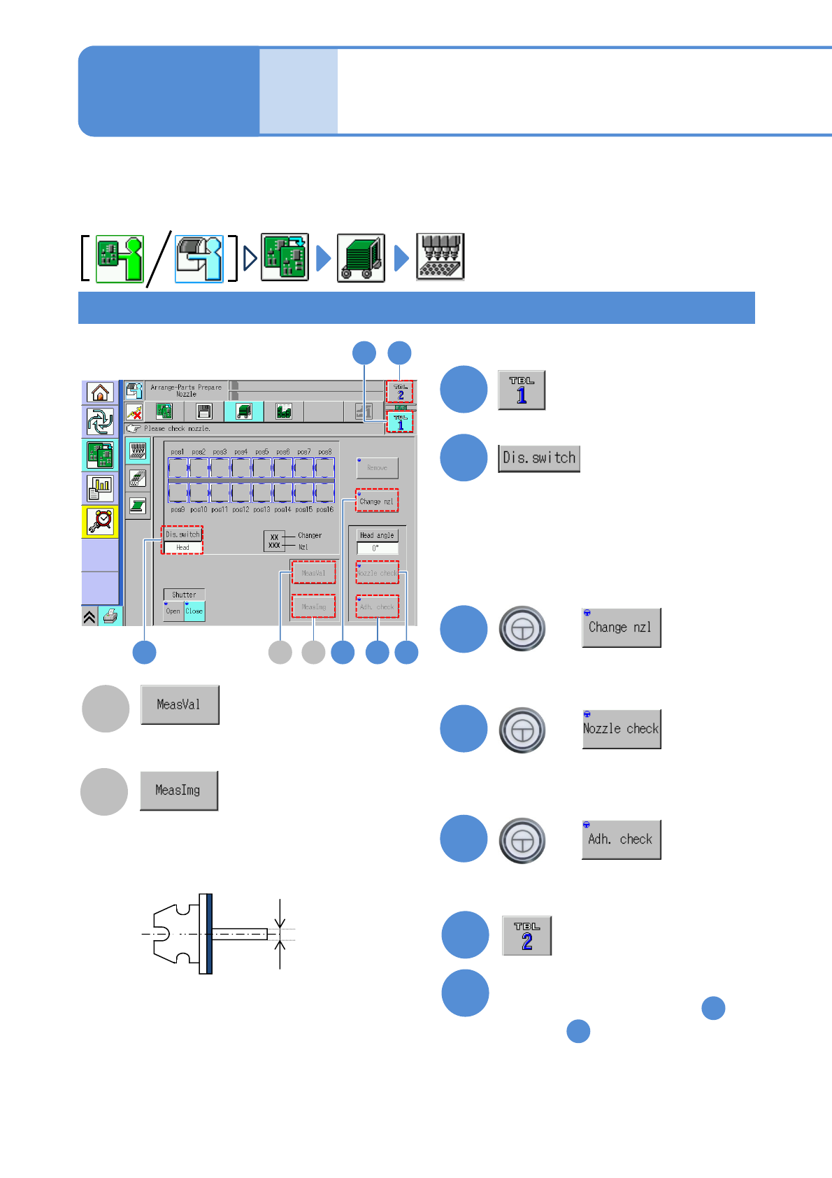 NPM-W 2 EJM7DE-MB-02 O-00 Individu- al prepara- tion R eplacing the no zzle 1 Nozzle check 2-5-2 -1 B A Displays the measurement value of the nozzle outer dimensions. Displays the nozzle image recognize d by the [Nozzle …
