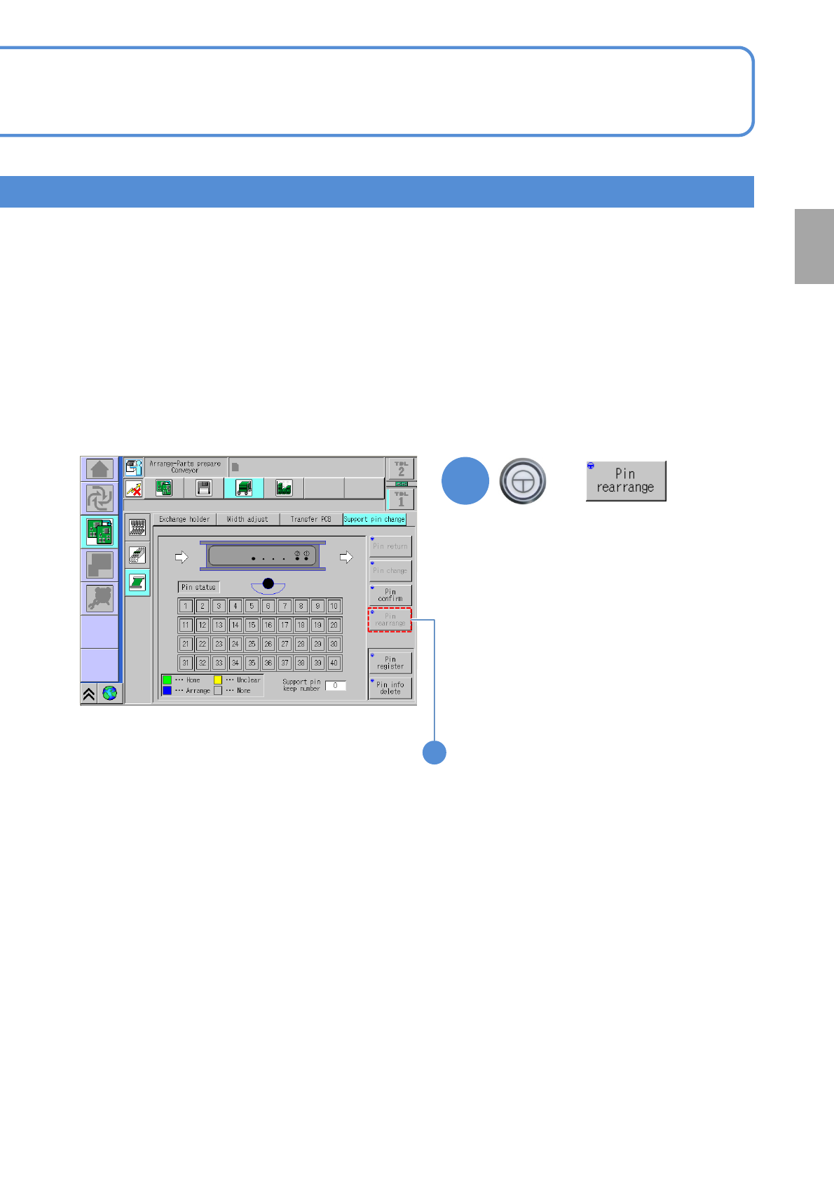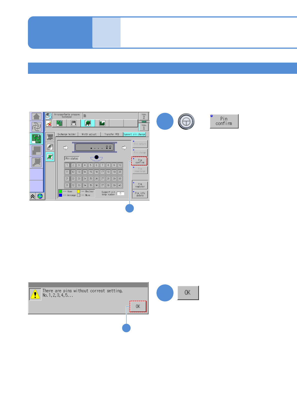 NPM-W 2 EJM7DE-MB-02O-0 0 2-5-8 -10 Preparatio n 3 ■ In the absence of a support pin whose status is displayed as Unclear on the screen Rearrange the support pins ■ In the presence of a support pin whose status is displa…