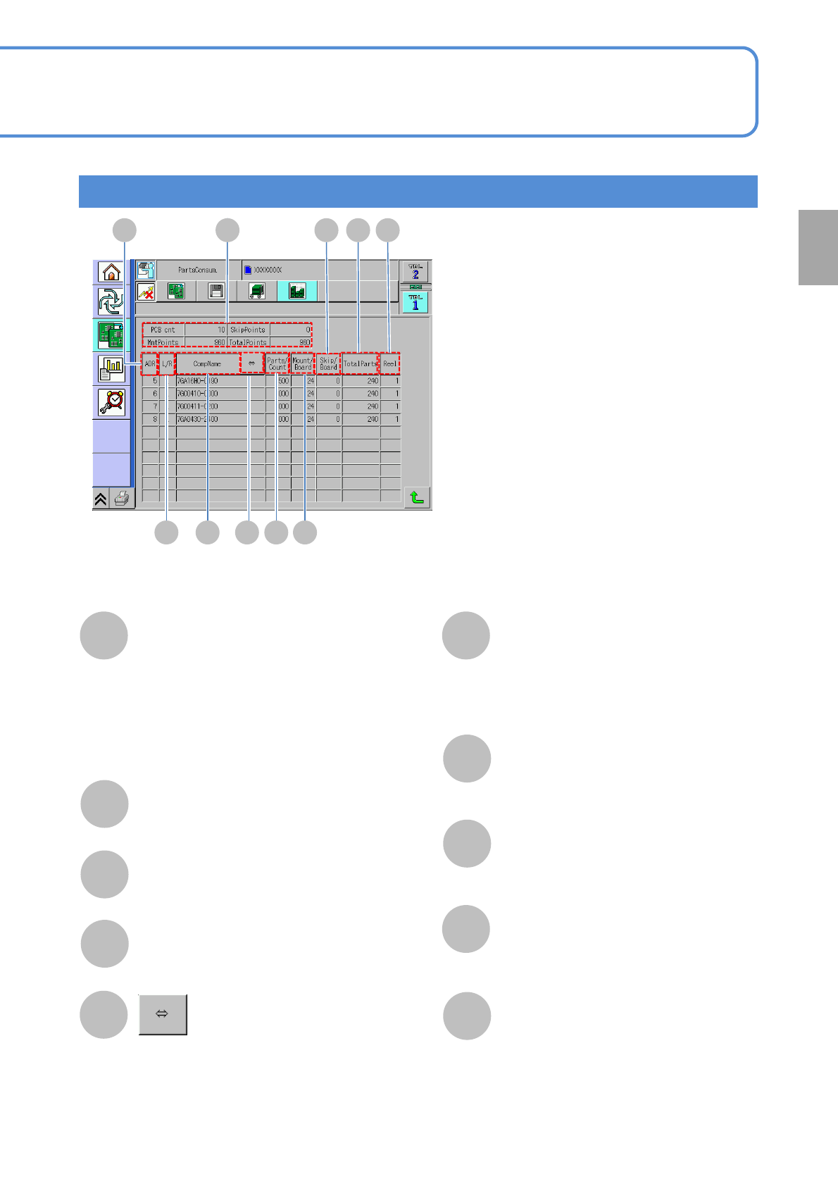 Displays the PCB count to be loaded.