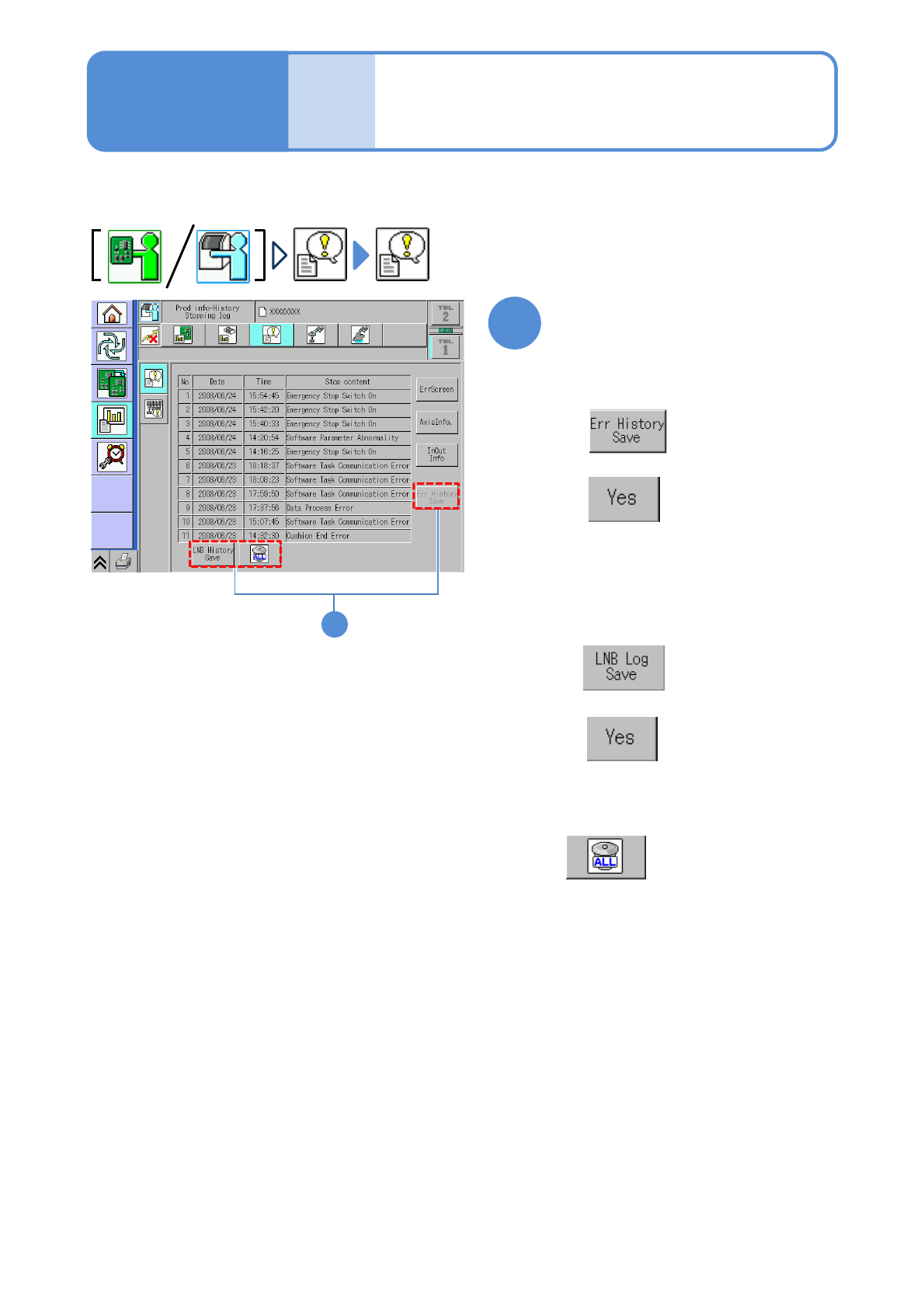 ■The stop history or axis logs