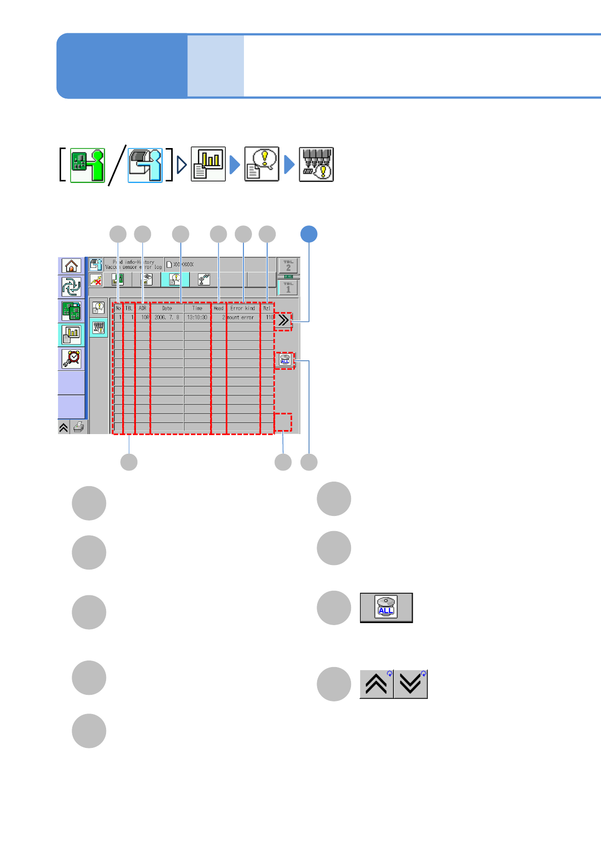 You can check up to 50 records of vacuum sensor error information, that occurred during automatic