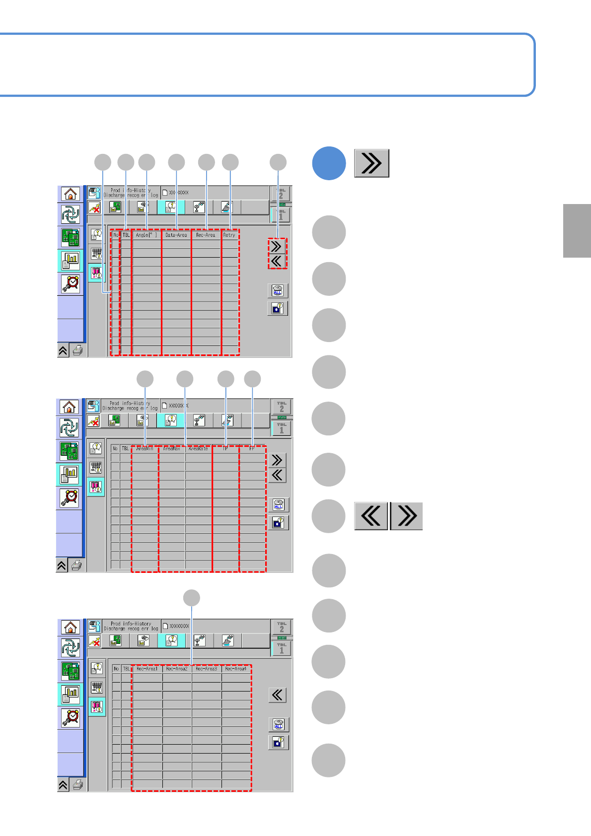 NPM-W 2 EJM7DE-MB-03 O-00 3-2-10 -2 C A B D E F G No Data number. Rec-Area Displays the total area value in recognition. (Un it : mm 2 ) Data-Area Displays the reference area value. (Unit : mm 2 ) TBL (table) The table o…
