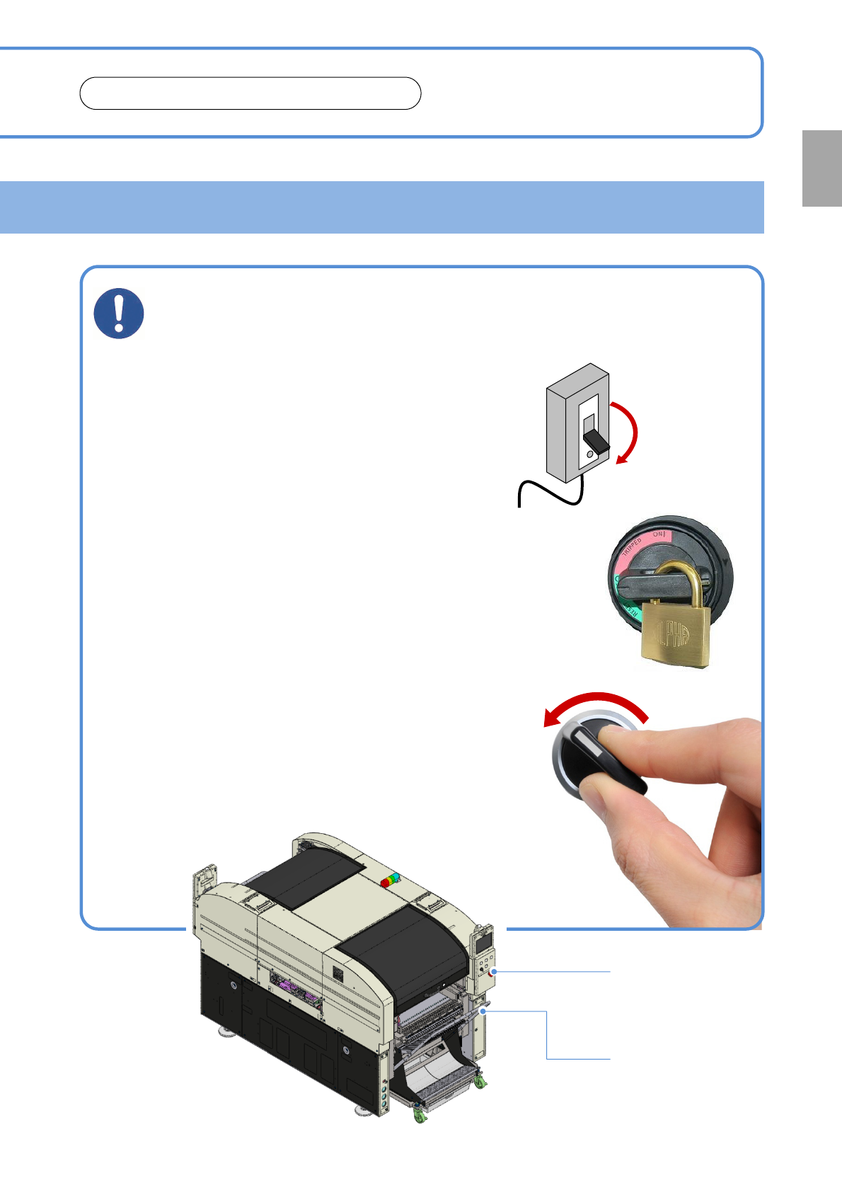 →Turn off the main power supply switch and lock out