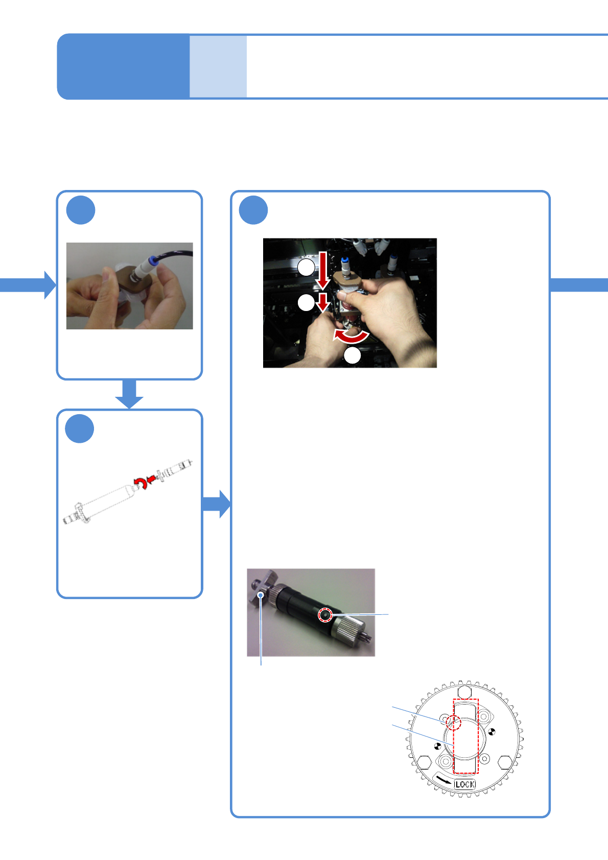 ●While fixing the lock plate with one hand, with the other