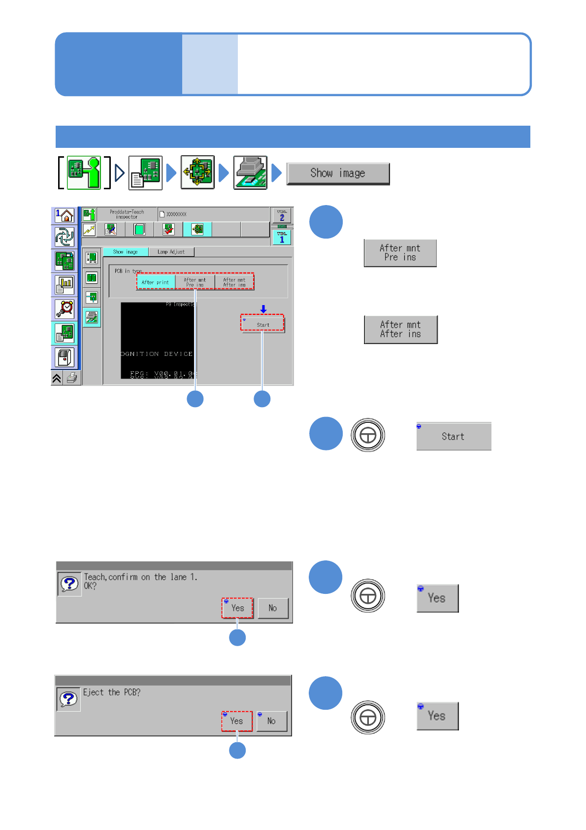 Move the inspection head to a component location, and, checking the image, adjust the lighting to the