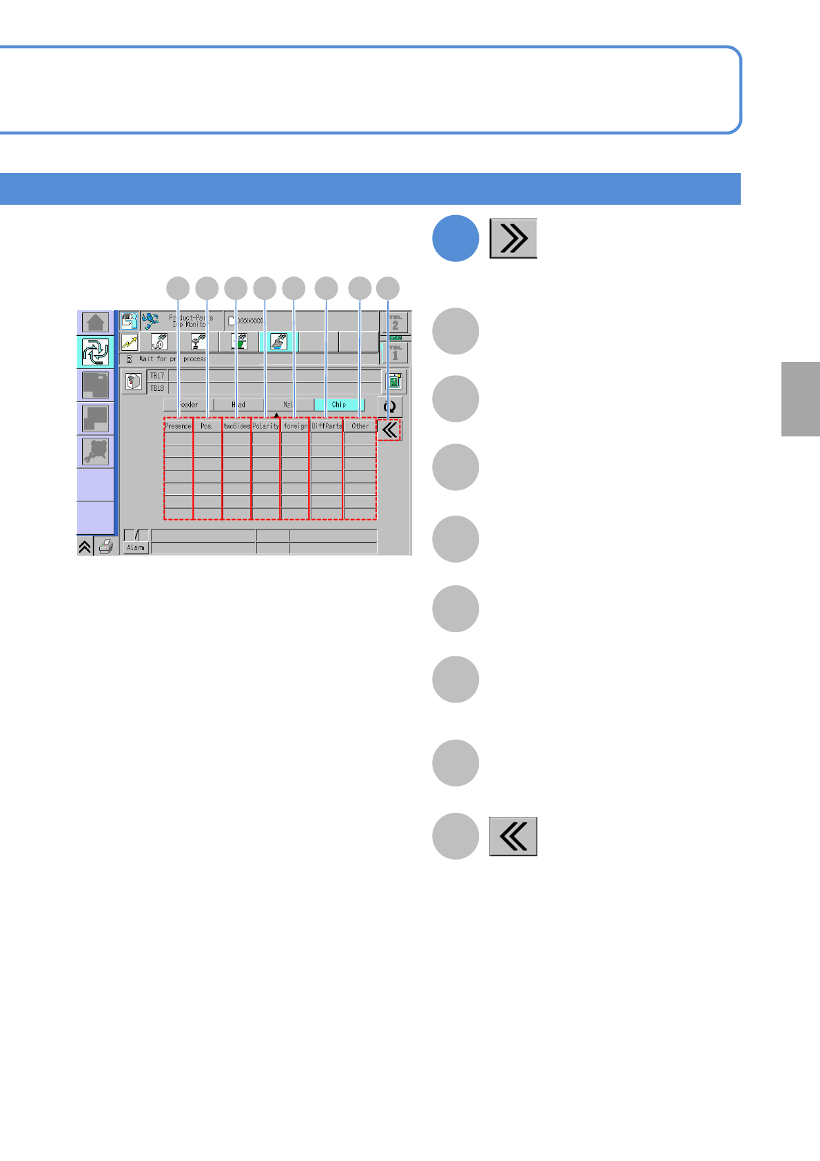NPM-W 2 EJM7DE-MB-04 O-00 4-4-3 -6 B A C D E F G Returns to the previous screen. 1 H H A B E F C D G (Displays detailed error information) Foreign body Different component Flip-over The number of flip-over inspection err…