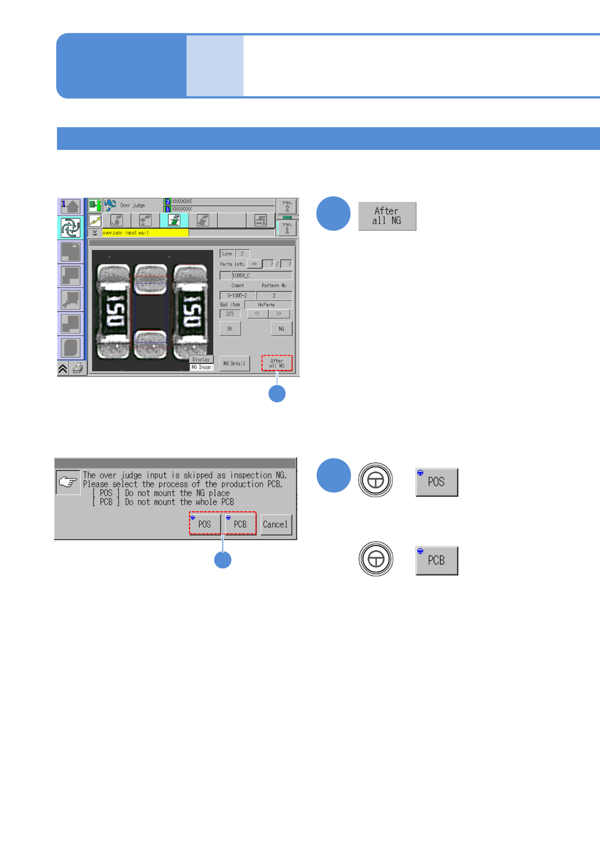 ●Visually check any inspection-NG location displayed on the screen and set it as either nonconforming or