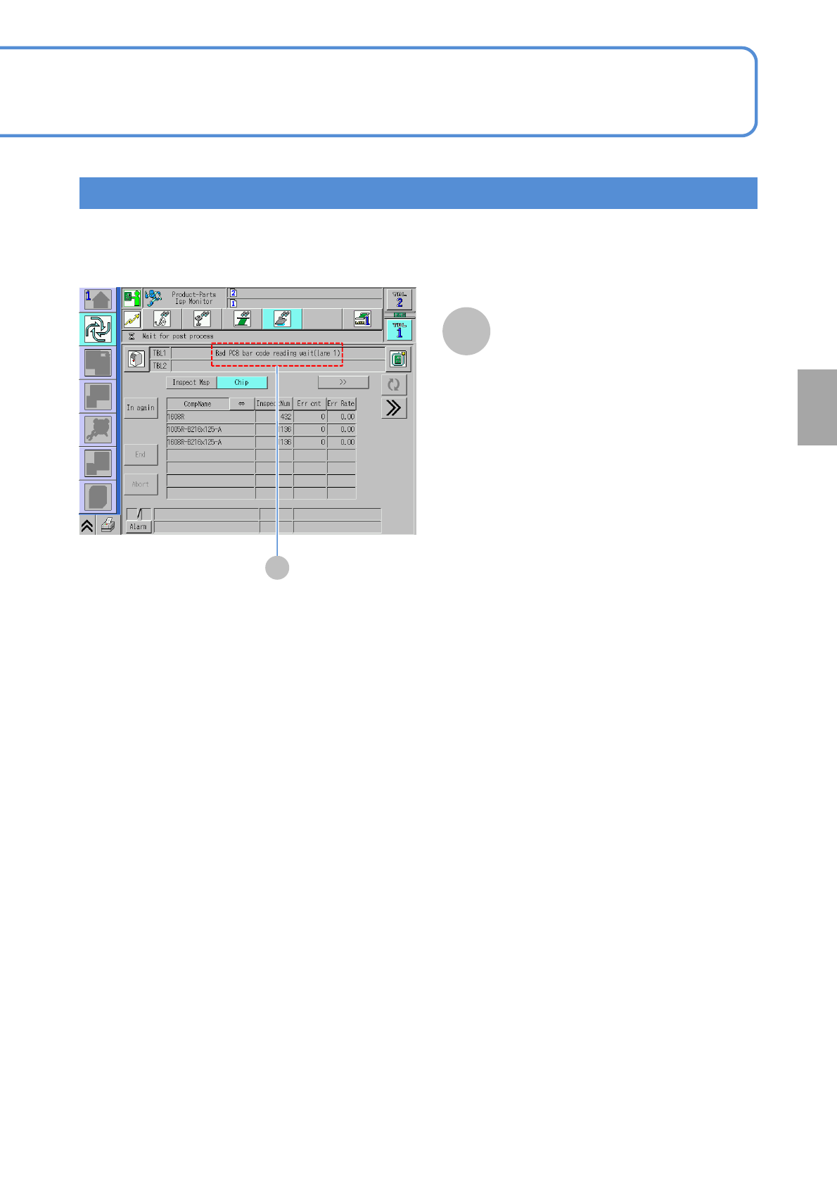 NPM-W 2 EJM7DE-MB-04 O-00 4-5-2 -4 Bar code scanner- based oper a tion 3 Operating procedure 4-5-2 Defec- tive PCB process 1 ● Unloading of PCBs on the upstream side stops and the machine comes to an immediate (single) s…