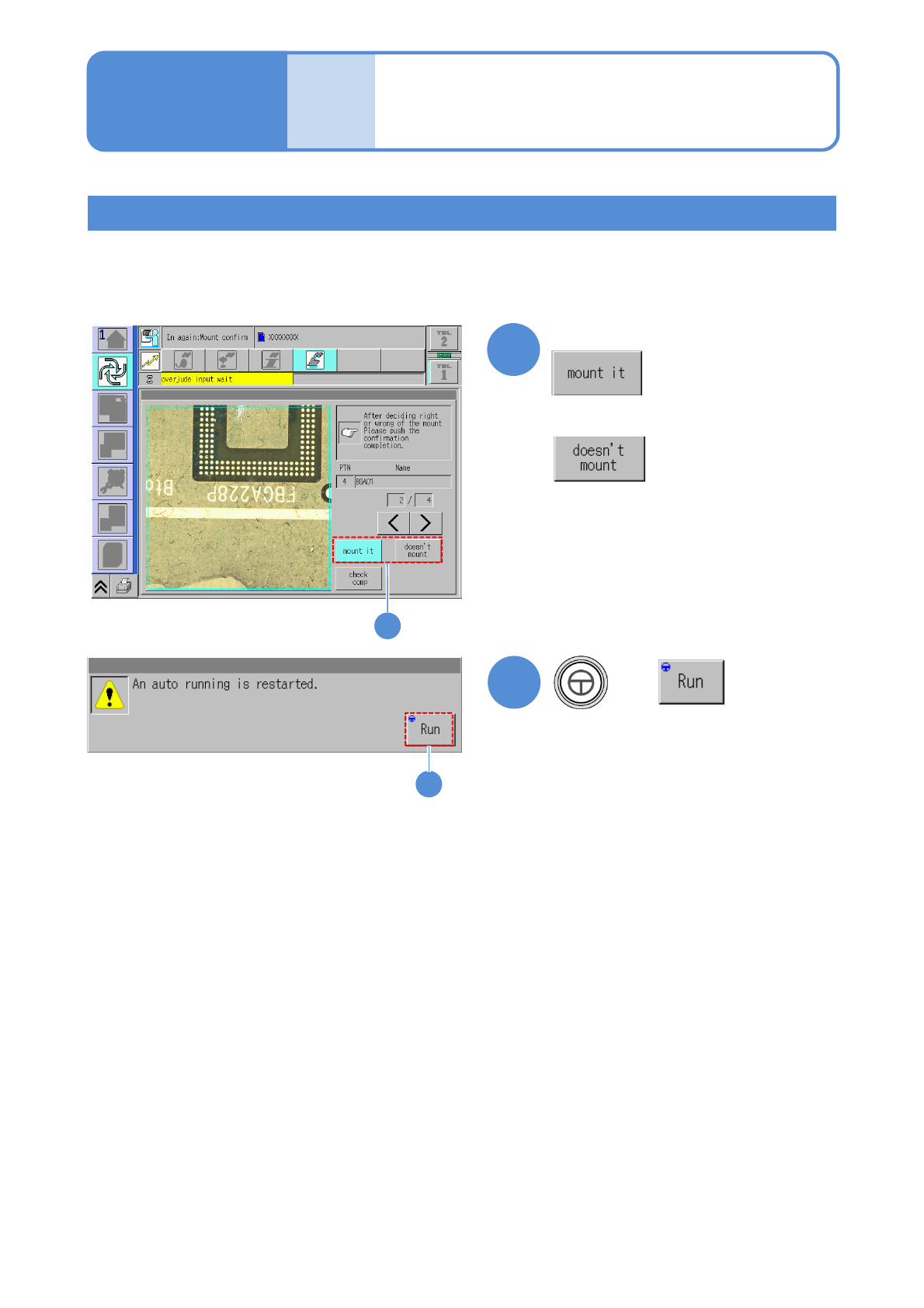 NPM-W 2 EJM7DE-MB-04 O-00 4-5-3 Component inspection Non-bar code scanner– based oper a tion Operating procedure 4-5-3 Defec- tive PCB process Only when such a communication switch as the one for bad ma rk recognition re…