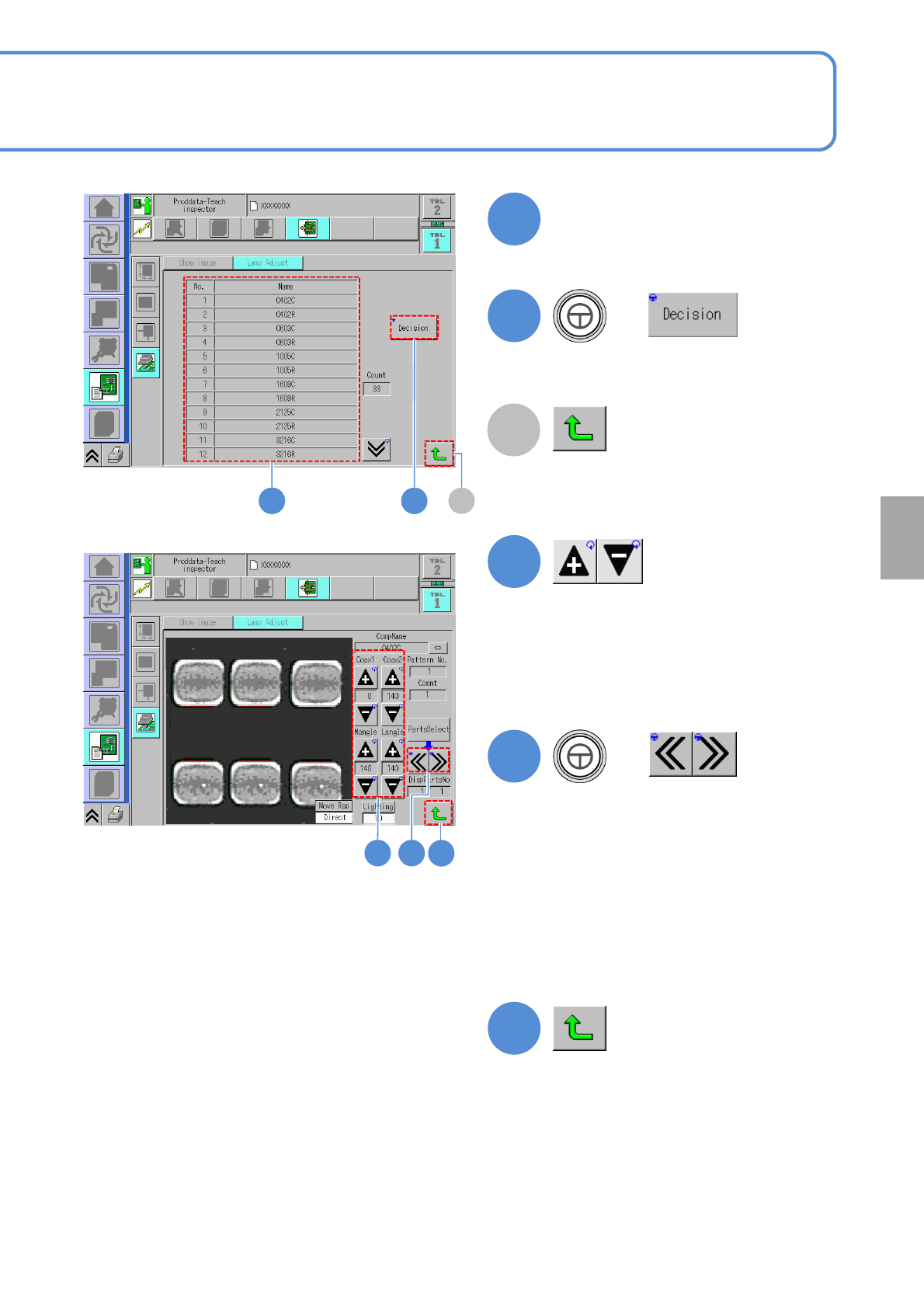 NPM-W 2 EJM7DE-MB-05O-0 0 Checking the lighting condition (U nnecessary under normal condition) Operating procedure 5-3-2 1 Name Comment ● Choose the comp onent search mode. 2 + 1 ■ When the mode is a component name 1 Pr…