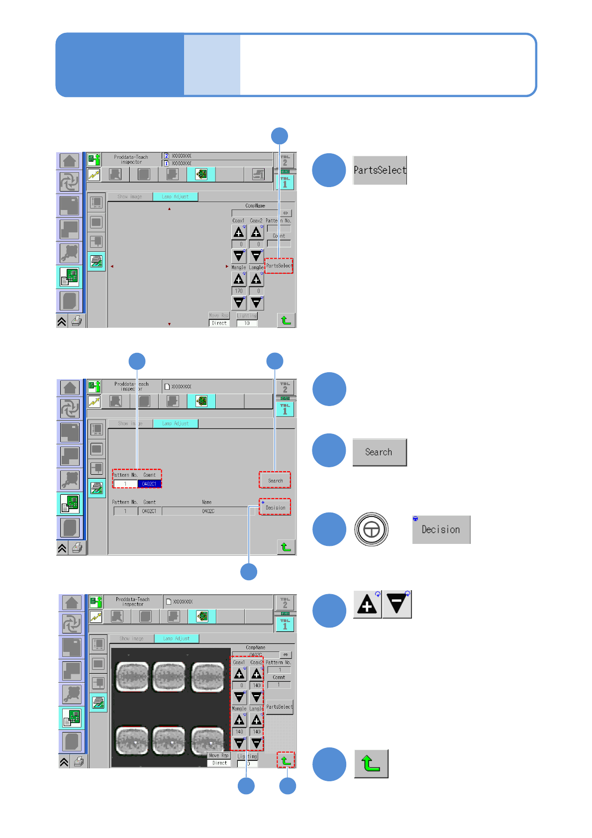 NPM-W 2 EJM7DE-MB-05O-0 0 Ca pturing the ima ges of teac hing PCB 4 Operating procedure 5-3-2 1 ■ When the mode is a comment 1 (The screen where you select the componen t to check its image condition is displayed.) 2 3 5…