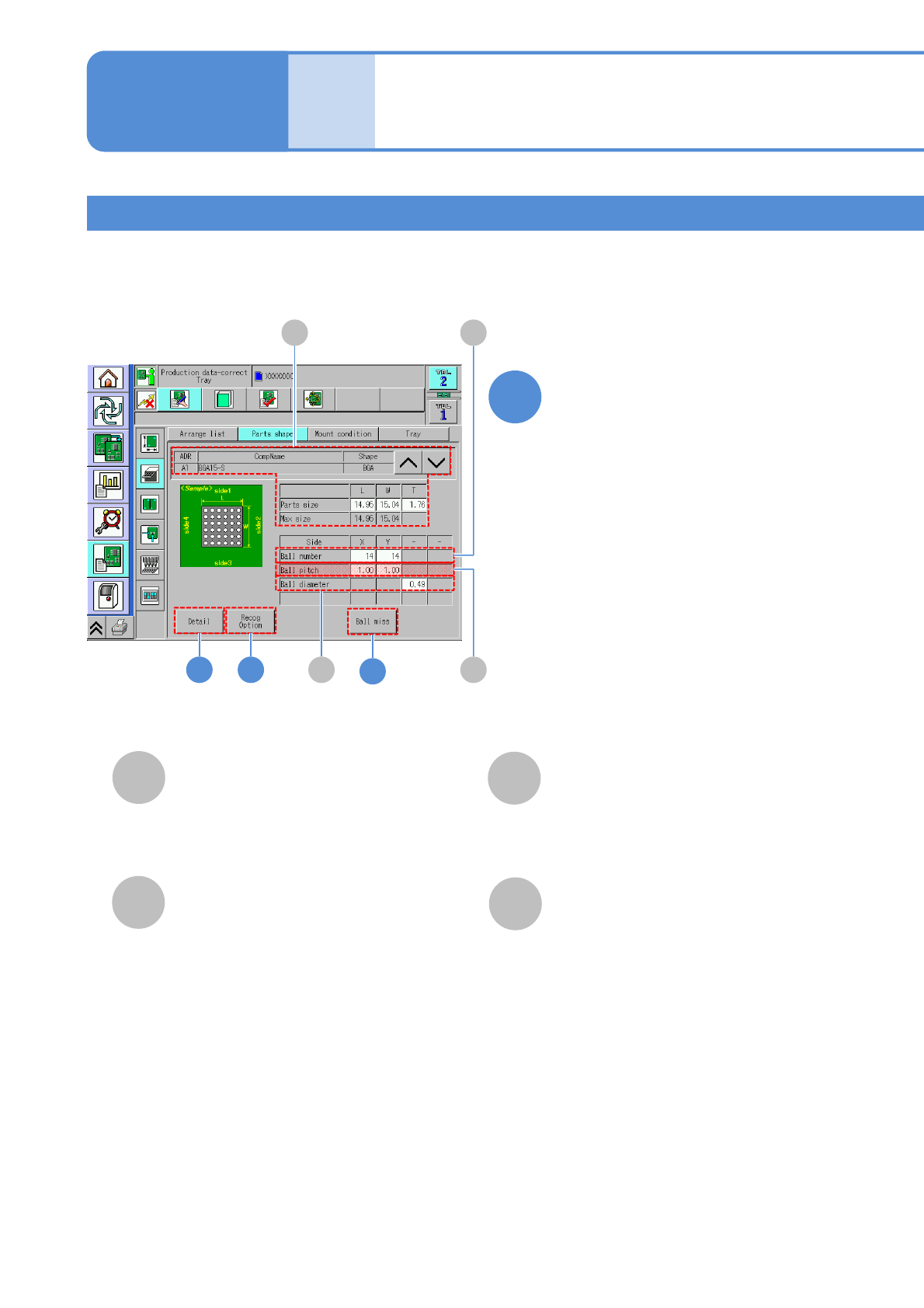 NPM-W 2 EJM7DE-MB-06O-0 0 A CompNam T olerance of a component size, pickup/ mount information B C E Ball float F Tolerance of ball float. ● Unit: mm. G Returns to the previous screen. Ball pitch Recog height (mm) Eject h…