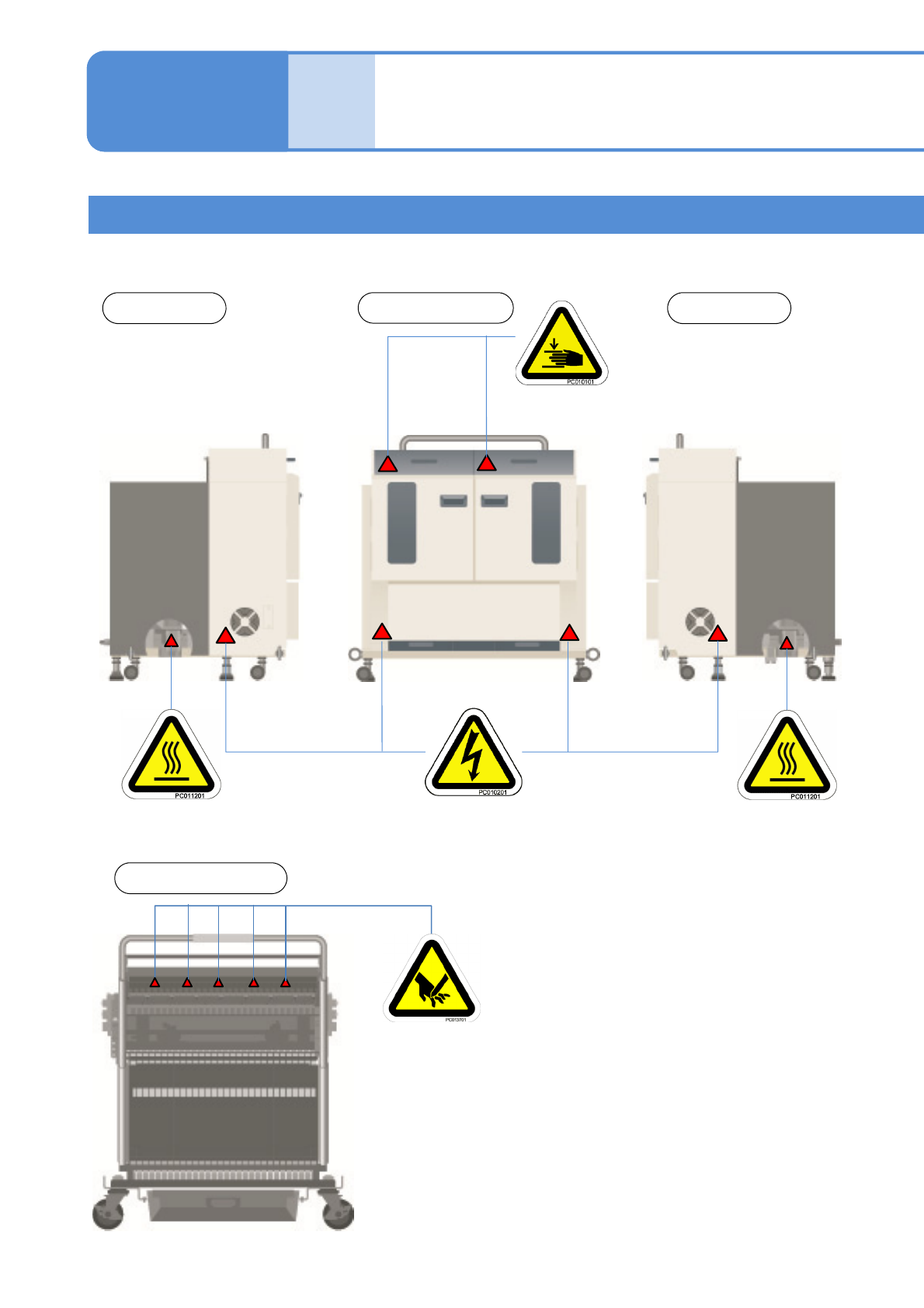 NPM-W 2 EJM7DE-SF-01N-00 1-2 -11 C W ar ning labels 6 1-2 W arning labels W arning label ■ T win tray feeder ■ Feeder cart Operator side Right side Left side Operator side