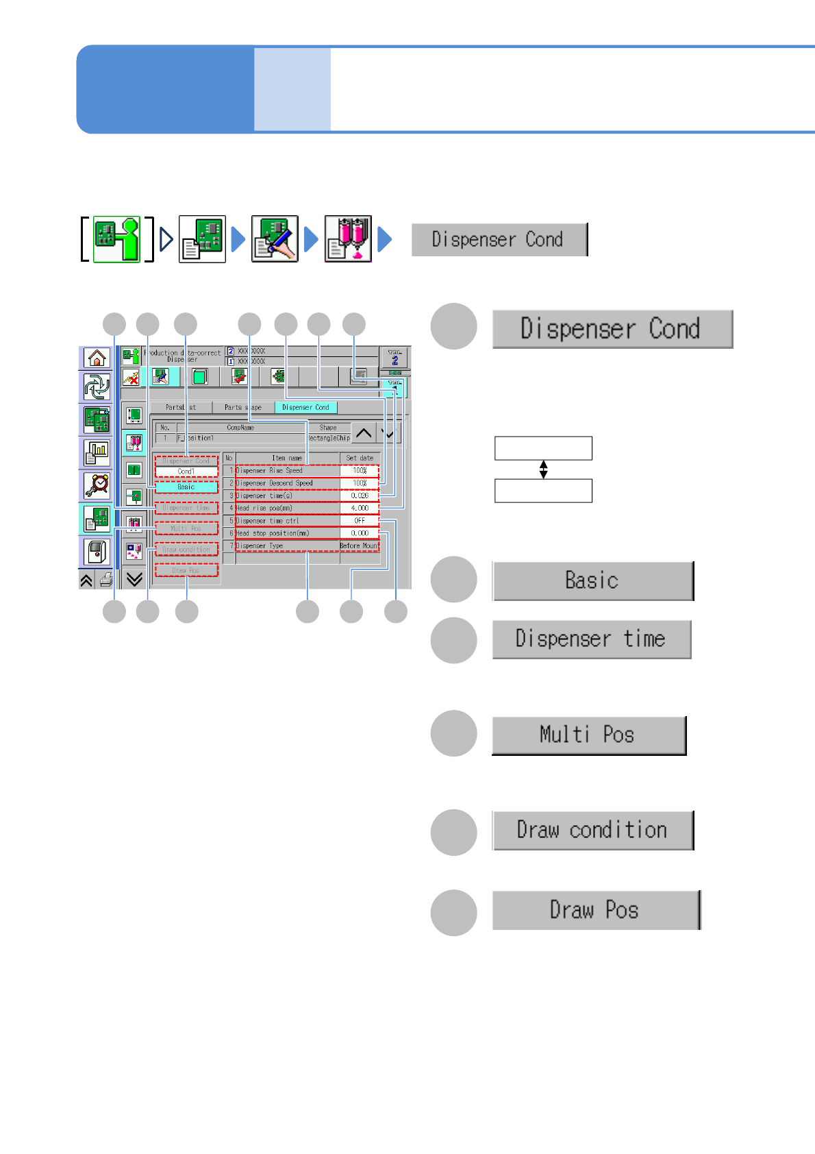 The dispensing timing condition setting