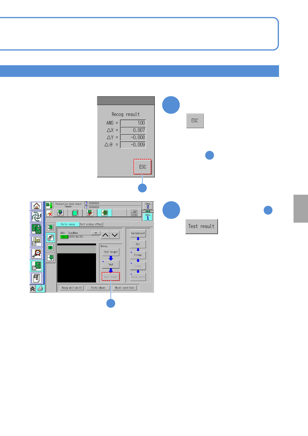NPM-W 2 EJM7DE-MB-06O-0 0 6-2-4 -10 Setting change ● Ensure [ANS= 100] appears in the recognition res ult field. ● If ANS is 100 or less, repeat from . Confirm the recognition result 1 20 19 19 20 T o reconfirm the resul…