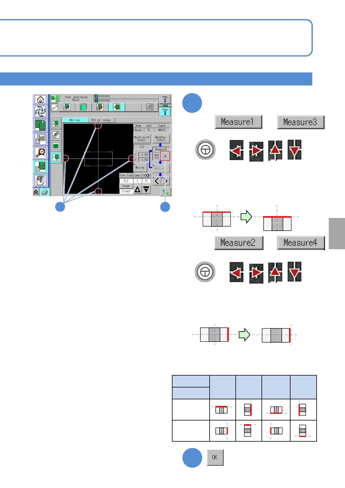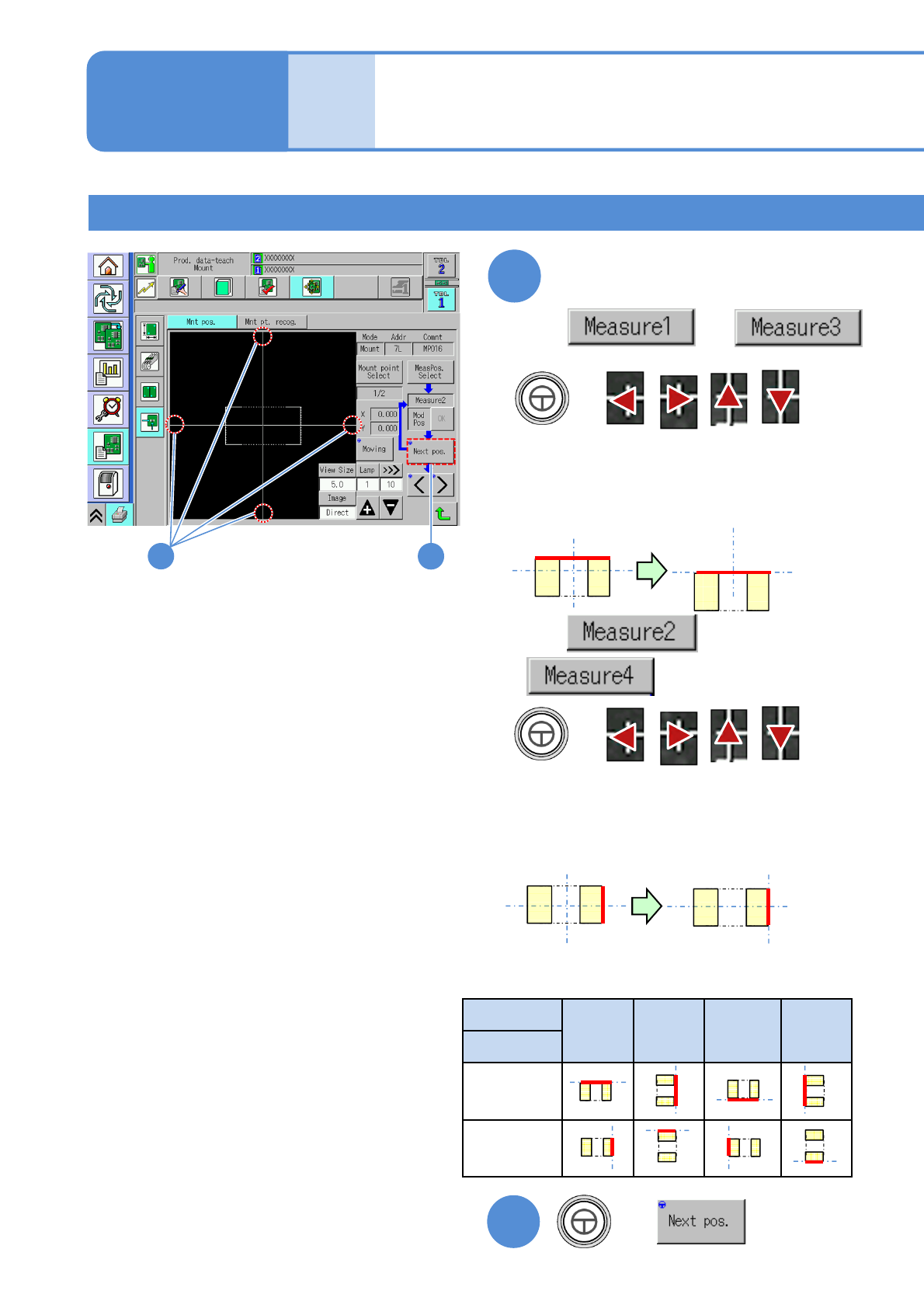 NPM-W 2 EJM7DE-MB-06 O-00 6-2-9 -11 Produc- tion data teaching Placement coor dinates teac h 6 Operating procedure 6-2-9 7 + ● Align the cross line to the top of the component electrode. Align the cross line to an electr…