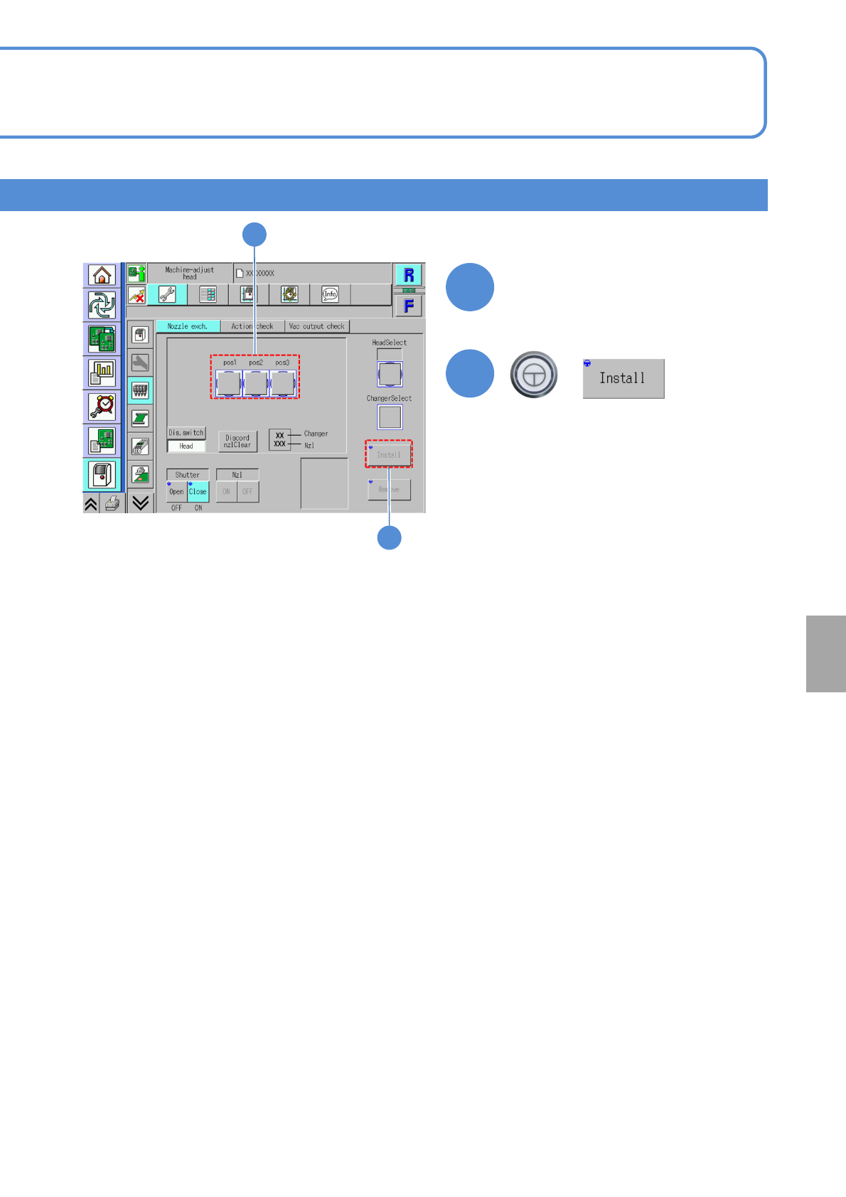NPM-W 2 EJM7DE-MB-07 O-00 7-2-5 -4 Choose the head to install the nozzle 4 (The button turns in blue color) + 5 5 4 System administration