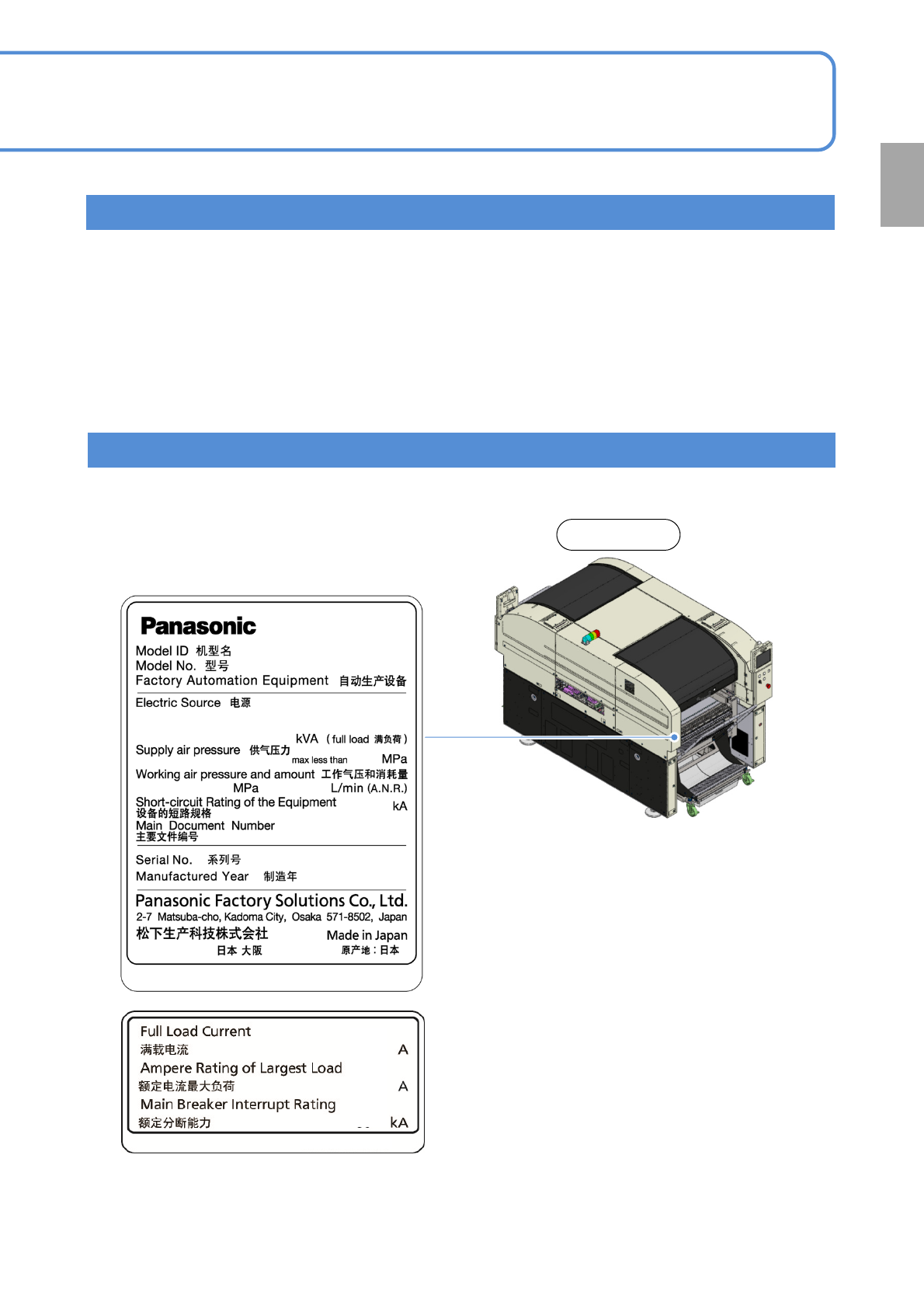The Product nameplate indicating the product name (Model ID) and serial number of the machine is affixed at