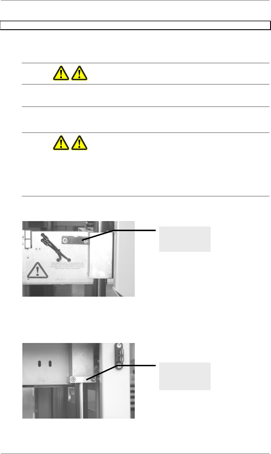 lock must be secured as shown in the figure below on the guide shaft underneath the lift.