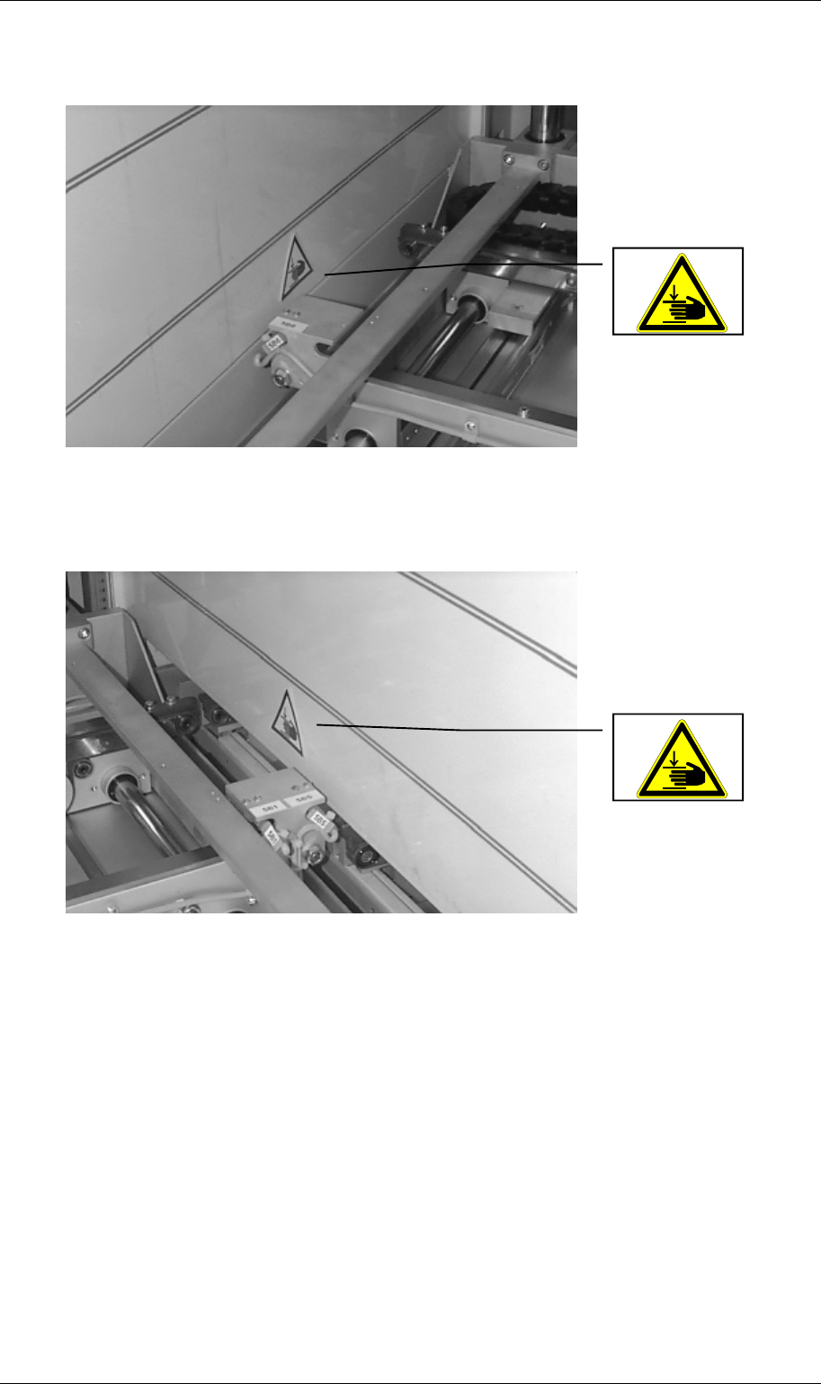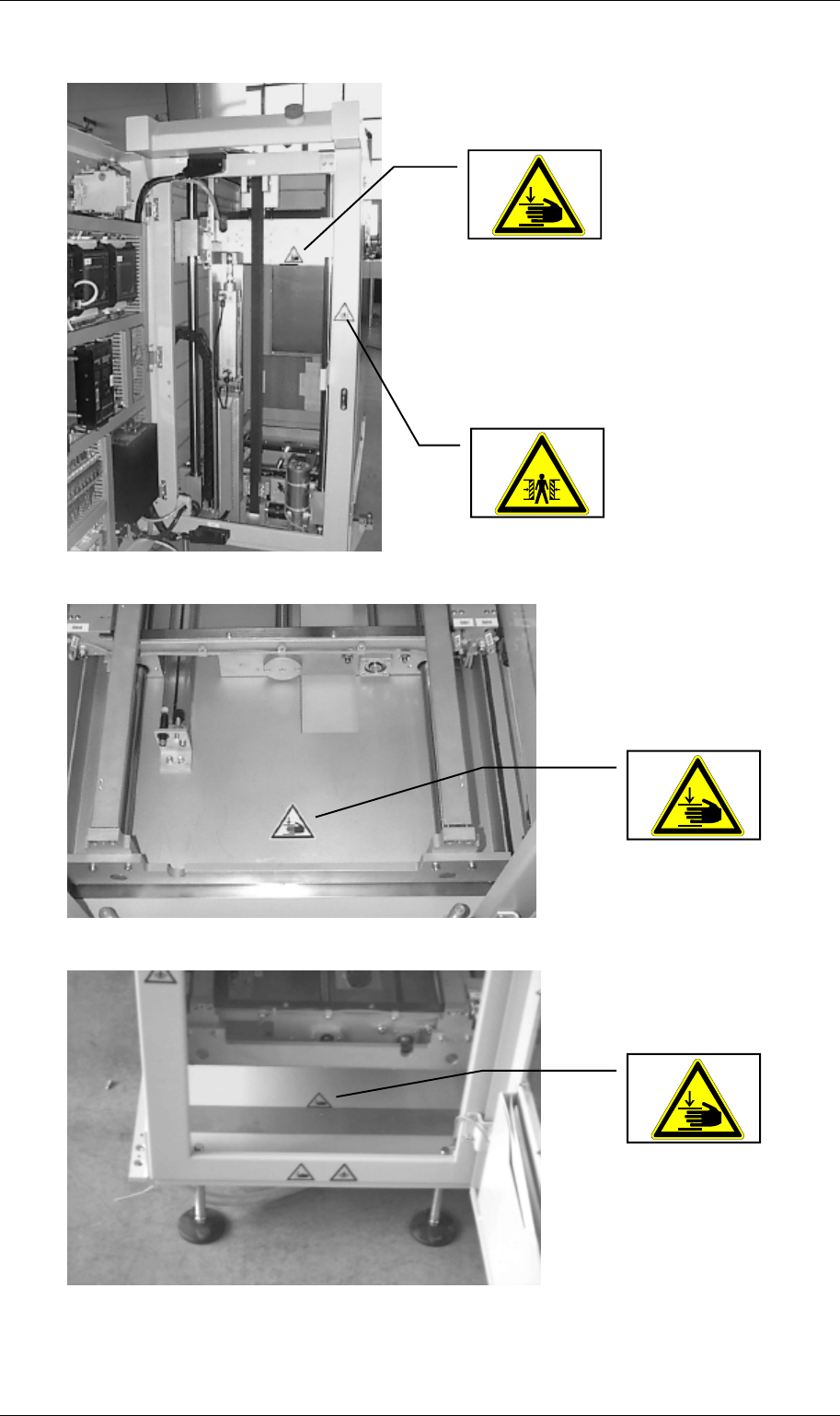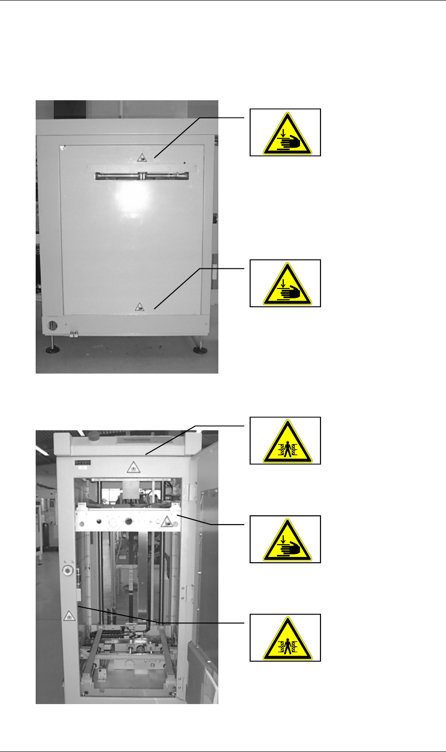 Order No. 00192 169-01 User Manual - Productivity Lift E_SPLFS03_V40_11_0300_200300_V1_14.doc Last update: 20.03.2000 - Version V 1.14 Page 19 Figure 8: Labelling danger rear side of the lift Figure 9: Labelling danger…
