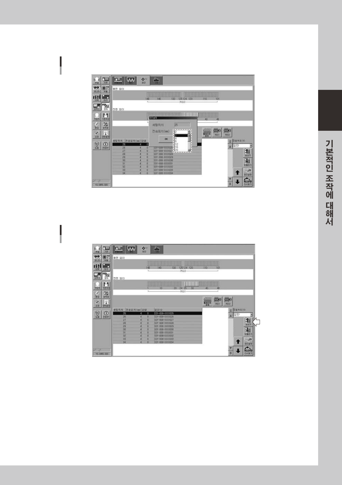 세팅한부품에맞는전송피치를풀다운메뉴로부터선택해서 ,[OK] 버튼을눌러주십시오 .