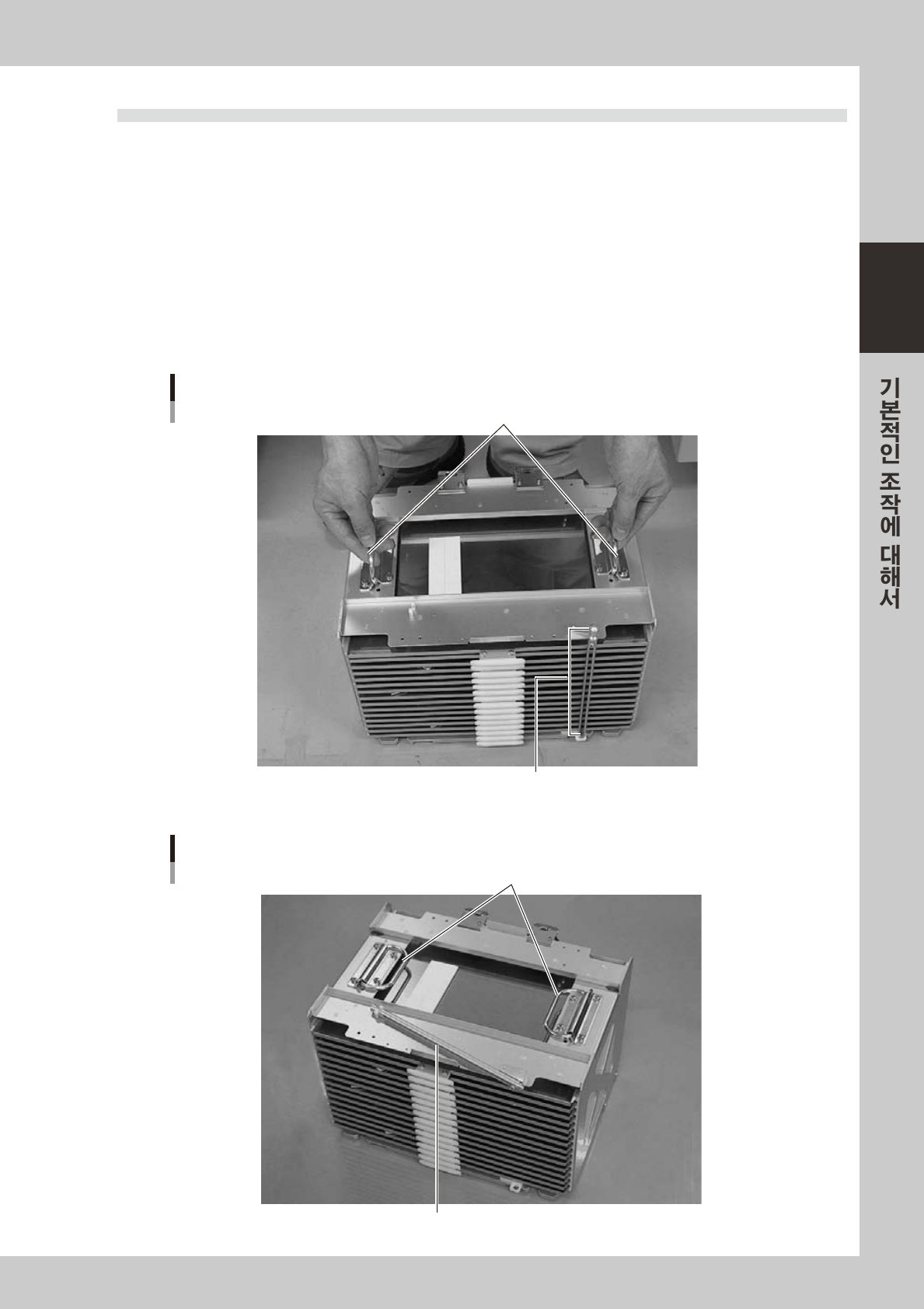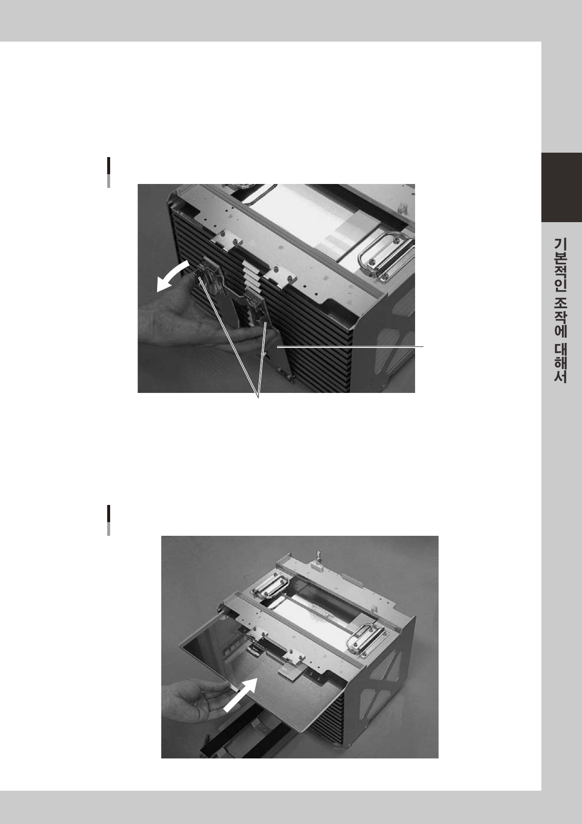 매거진을들어옮길때에는 ,매거진윗면의좌우핸들을양손으로잡아서기울지않게해주십시오 .