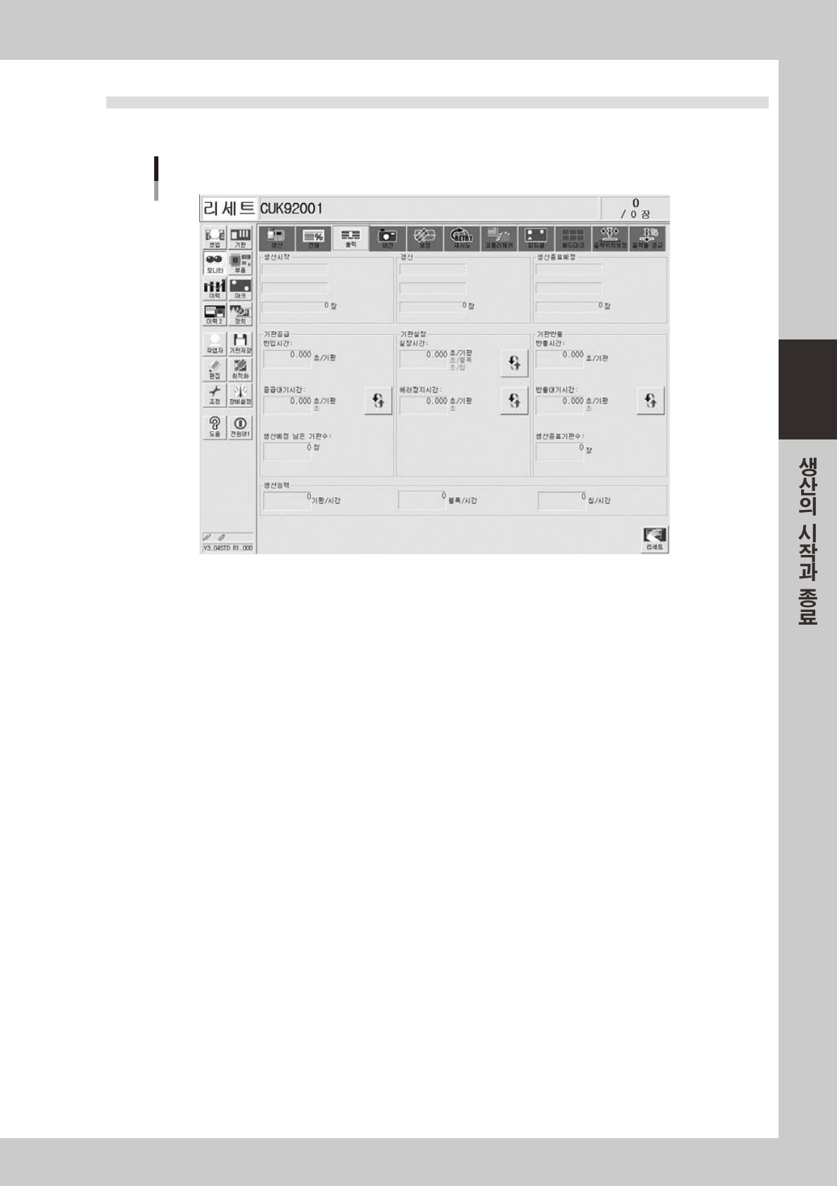 생산데이터의관리정보를리세트합니다 .생산데이터의관리정보에는 ,화면에표시되어있는각데이터및현재의생산수